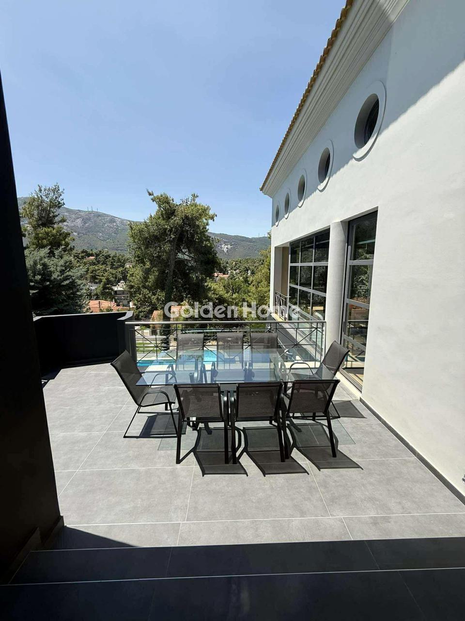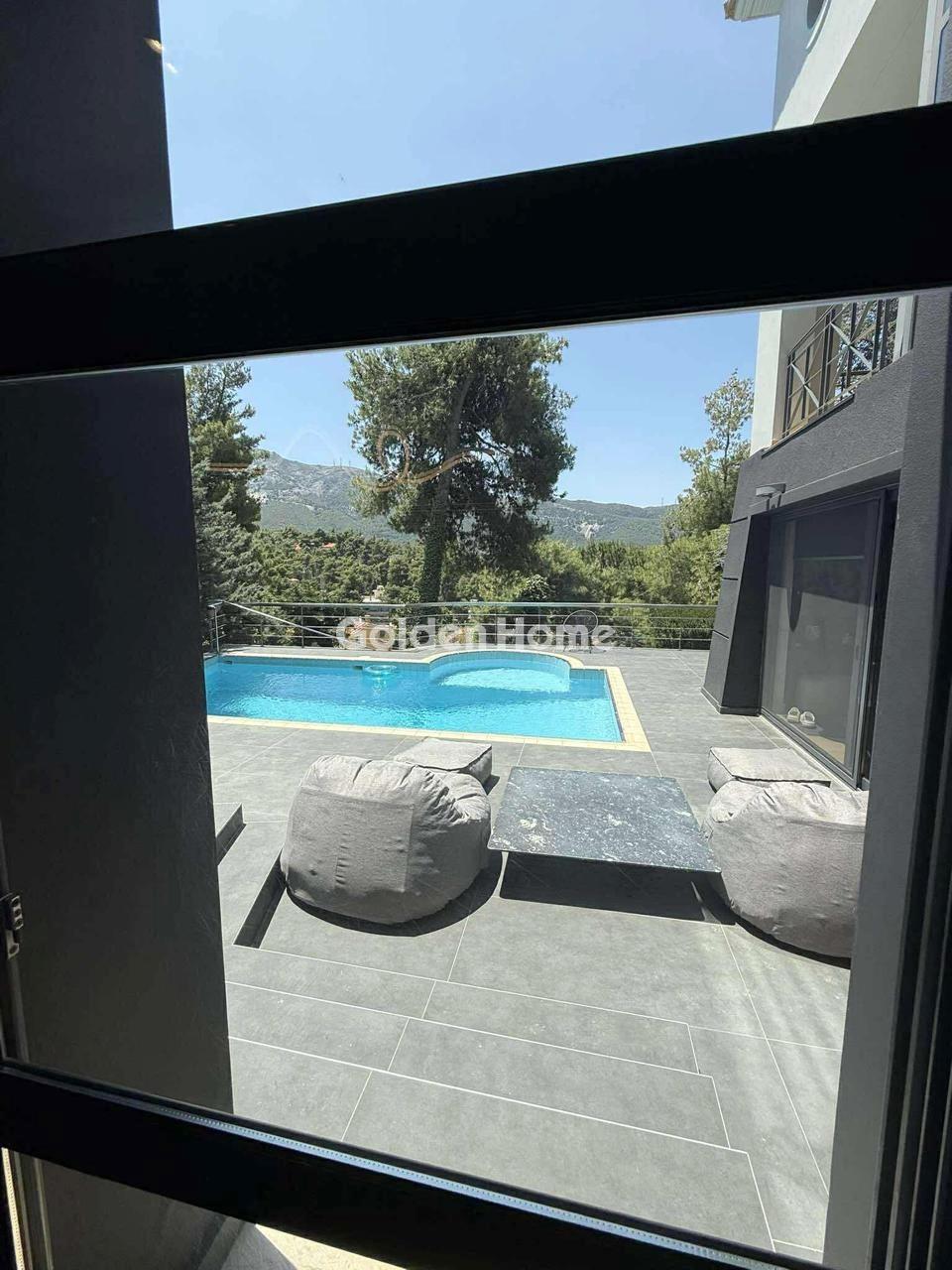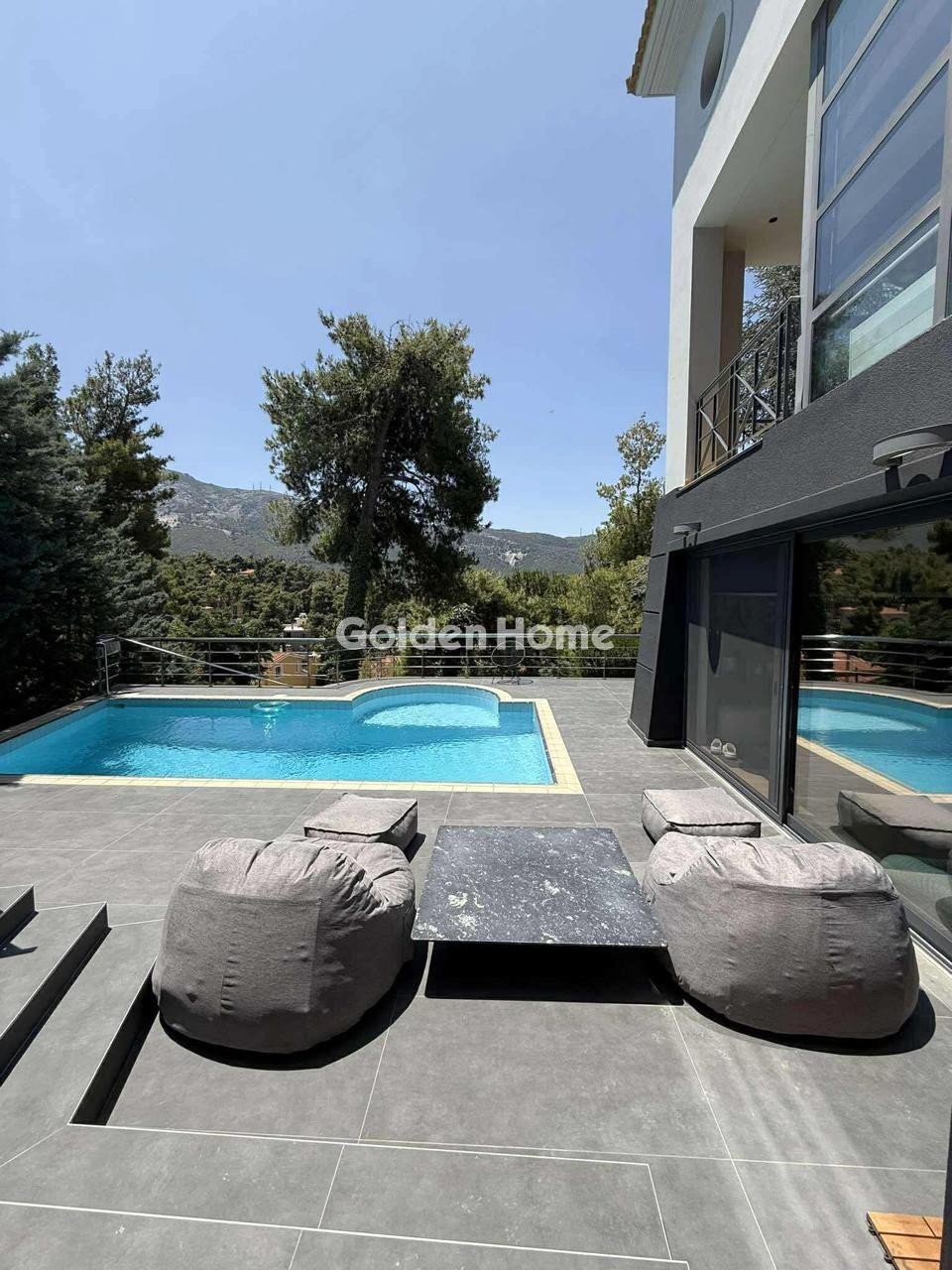 In one of the most beautiful and quiet areas of Dionysos, a luxurious detached house with a total area of 668 sq m is for sale, built in 2001, completely renovated in 2025, which combines comfort, aesthetics and high quality construction. Specifically, the property includes 3 bedrooms, two of which have en-suite bathrooms and separate walk-in closets, with the possibility of configuring up to 6 bedrooms in total, 2 different and independent living areas, with unlimited view of the lush green landscape and the private swimming pool. There are also 2 modern kitchens with top quality materials. In addition, there is a spacious underground parking space, many storage spaces, an internal elevator, autonomous heating and a solar water heater. The detached house is surrounded by a well-kept garden, located on a plot of 803 sq m, offering privacy, comfort and a sense of the countryside, a short distance from the main roads. An ideal choice for those looking for a luxurious and functional living space in the northern suburbs.