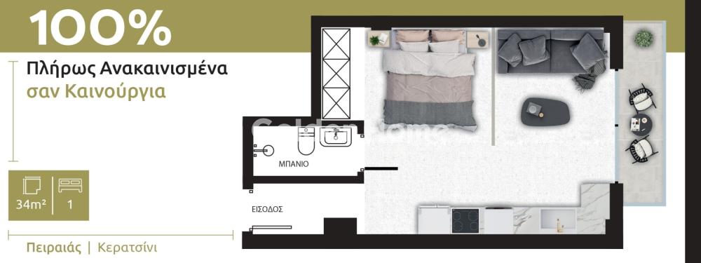 In a quiet and privileged neighborhood in Keratsini, undertook the complete renovation of a 34 sq.m. apartment with one bedroom. The apartment is airy, featuring large openings that ensure ample natural light, excellent ventilation, and an unobstructed view. Its location is particularly advantageous, as it is close to the Piraeus Metro, just a few steps from the port and Akti Kondyli.
