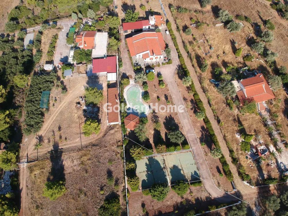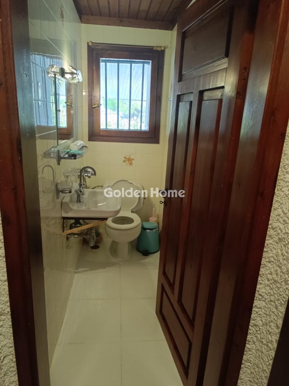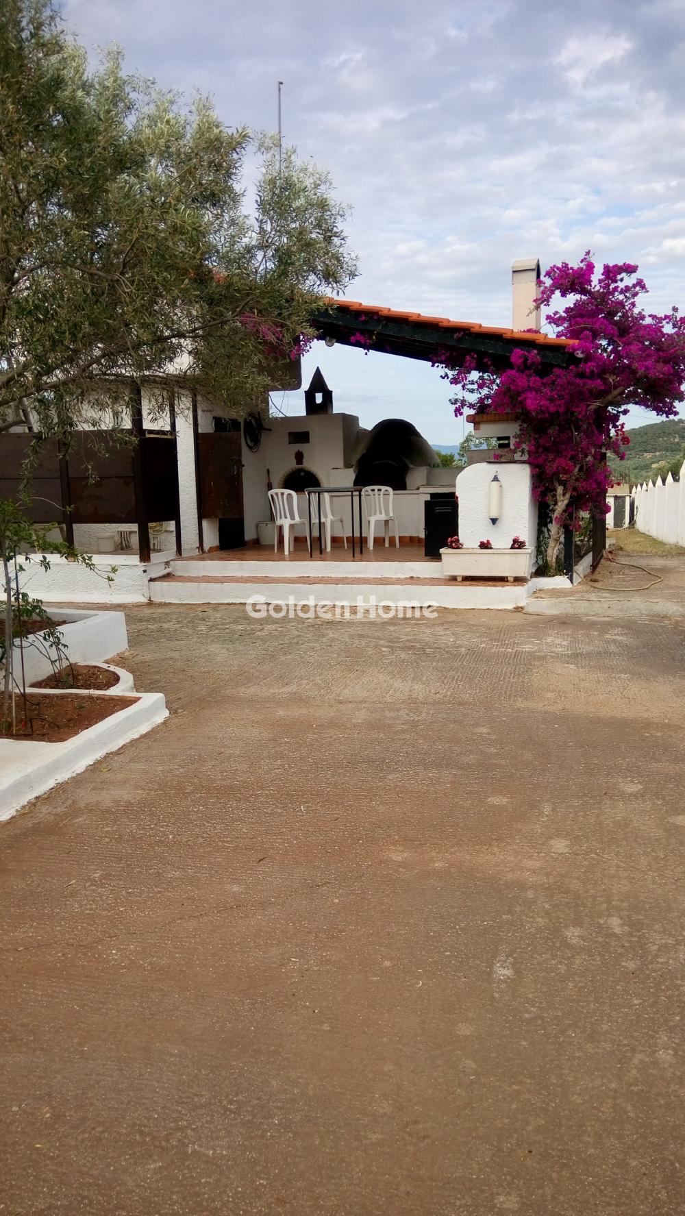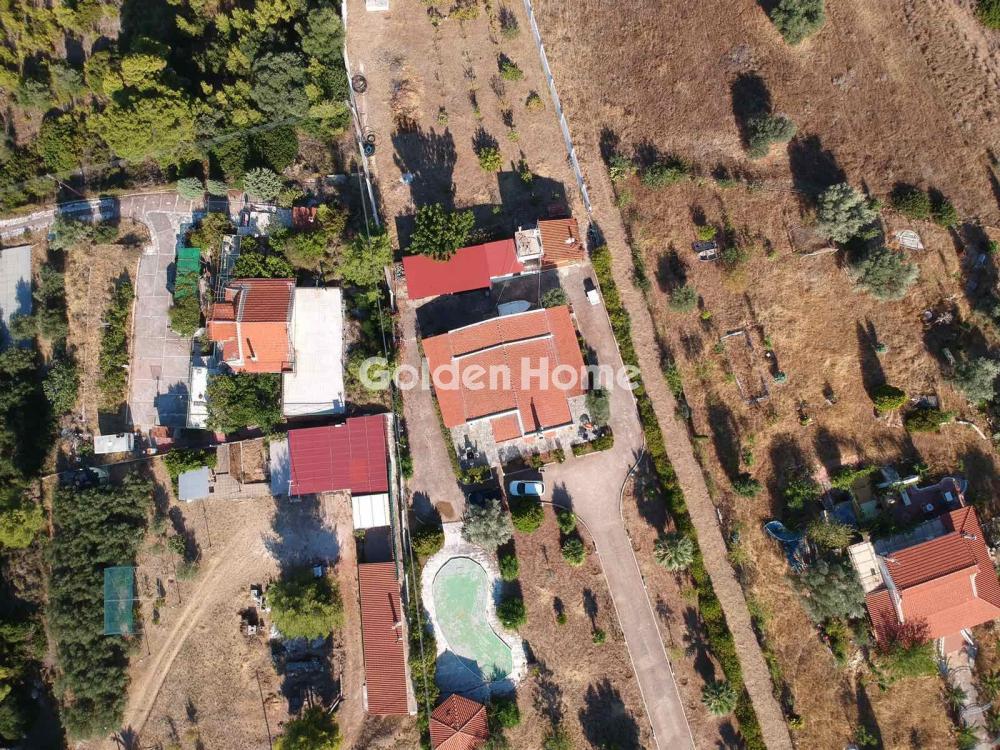 For sale: a bright and airy 130 sq.m. detached house in Skalossia, Loutraki, built in 1984 on a 5,000 sq.m. plot, just 200 meters from the sea, in a completely quiet and green setting. The property features a vast outdoor area with a swimming pool, a gazebo for enjoyable BBQs with tables for relaxation, and two storage rooms (one 20 sq.m. that can be converted into a closed garage and a smaller one for tools), with the possibility to plant vegetables or flowers. The outdoor space is particularly spacious and can accommodate 8 to 10 cars. The house includes a large living room with a sitting area and fireplace, a kitchen with an internal pantry, three bedrooms, a bathroom, and a WC. Heating is autonomous, oil-fired, and includes a boiler. Ideal as a permanent or vacation home for summer holidays as well as short getaways during Christmas, Easter, and other holidays, thanks to its easy access from Athens. Loutraki is renowned for its lush surroundings, beautiful coastal area, thermal springs, and excellent recreational and sports facilities, making it one of the most popular destinations for relaxation and holidays.