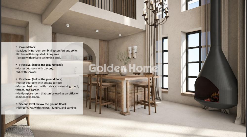 Unique Residential Complex in Kranidi – Luxury, Privacy & Investment Value . It is located at the heart of elegant Kranidi, just minutes from the enchanting coastline of Ermionida, lies a rare residential complex that perfectly combines contemporary architecture, refined aesthetics, and effortless comfort. An ideal choice for both private living and high-yield investment. The Complex Includes : Two Independent Maisonettes (total 176 m²) with Basement Area of 142 m² Each residence offers: An open-plan kitchen, living and dining area bathed in natural light with direct access to a private veranda A ground-floor master bedroom with balcony and a second master bedroom with veranda on the upper level Private swimming pool, sun terrace and independent entrance In the basement: a self-contained 90 m² apartment, parking spaces, storage rooms, laundry and utility areas A perfect option for boutique villa rentals or a luxurious family retreat. Three-Storey Residence of 160 m² with Internal Elevator An architectural gem offering exceptional functionality across three levels: Ground floor: Living room, kitchen with dining area, and access to a private pool and veranda Upper floor: Master bedroom with balcony First lower level: Two master bedrooms—one featuring a private pool, garden and veranda—plus a versatile space ideal as an office or extra bedroom Second lower level: Playroom, bathroom with shower, laundry area and closed parking space of 72 m² Built with premium materials and modern design, this residence offers a living experience that balances luxury with Mediterranean simplicity. The property is complemented by an adjacent plot with development potential, providing significant value appreciation and flexibility for future expansion or new touristic development. A Refined Haven in Kranidi Designed with respect for the natural landscape and attention to every detail, this complex appeals to those seeking luxurious living with absolute privacy, as well as to investors looking for a project with solid returns in one of Argolida’s most promising destinations.