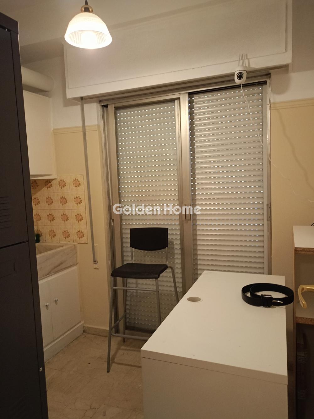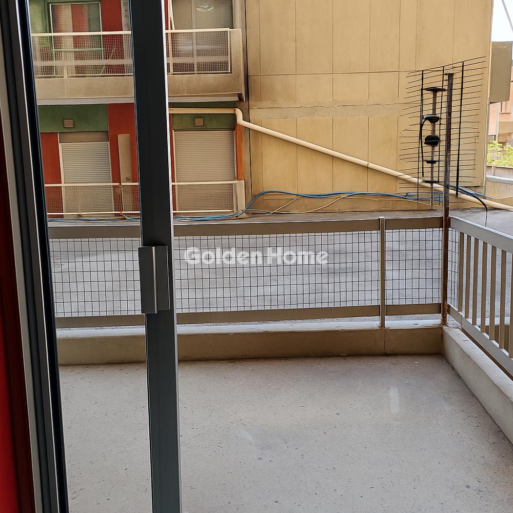 Semi-ground-floor studio apartment, interior, very close to the Agios Nikolaos electric railway station. Living room and kitchen with a single shared balcony.