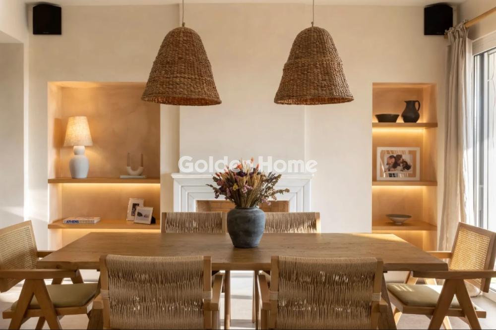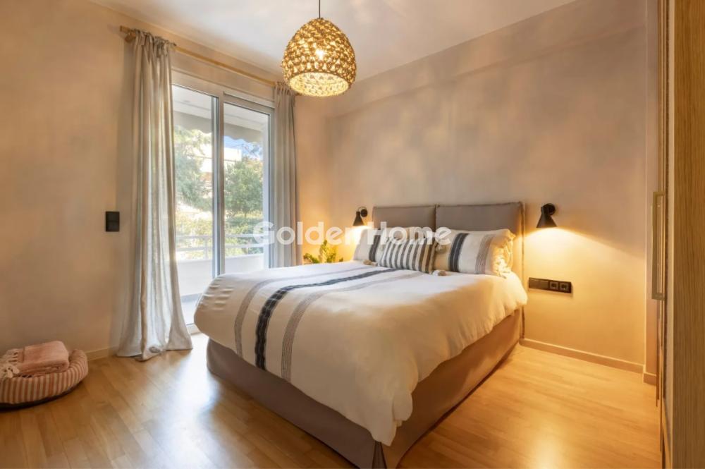 A stunning, high-aesthetics apartment, exceptionally bright, featuring an ideal ergonomic layout and excellent orientation. It is nestled in one of Voula’s most peaceful and green neighborhoods, surrounded by upscale residences, while offering immediate and easy access to the town center. Fully renovated in 2022, the apartment showcases top-quality materials and refined contemporary design. It includes a reinforced security door, alarm system, elegant fireplace, generous built-in storage, underground parking, and a storage room. Heating and cooling are provided by a heat pump, complemented by underfloor heating and ceiling fan coils, allowing independent temperature control in every room for maximum comfort. The impressive 54 sq.m. balcony extends the living space seamlessly, while the large swimming pool in the beautifully landscaped garden creates the perfect setting for relaxation. Voula enjoys an ideal location, just about thirty minutes from downtown Athens, the Port of Piraeus, and Athens International Airport, situated in one of the most beautiful areas of the Athenian Riviera. It is a charming, well-maintained neighborhood with parks, sports facilities, and walking paths, making it perfect for families and those seeking a high-quality lifestyle. For sea-sport enthusiasts, the Voula Nautical Club offers a wide range of water activities right by the coast.