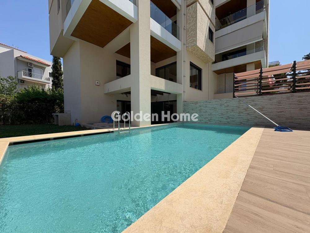 Newly built three-level maisonette with excellent aesthetics and unique location, in the center of Voula, very close to the market square and the beach. Upon entering we find the reception area, comfortable, open plan kitchen which has built-in Miele appliances. On this level we find the private swimming pool with garden and BBQ, as well as a guest wc. On the 1st floor there is a bedroom with comfortable bathroom and large wardrobe. In the basement we will find a fairly large space that can function as an independent apartment as it has its own entrance, kitchen, bathroom and bedroom. Cooling and heating autonomous with fan coil, triple energy solar, closed garage and basement storage.