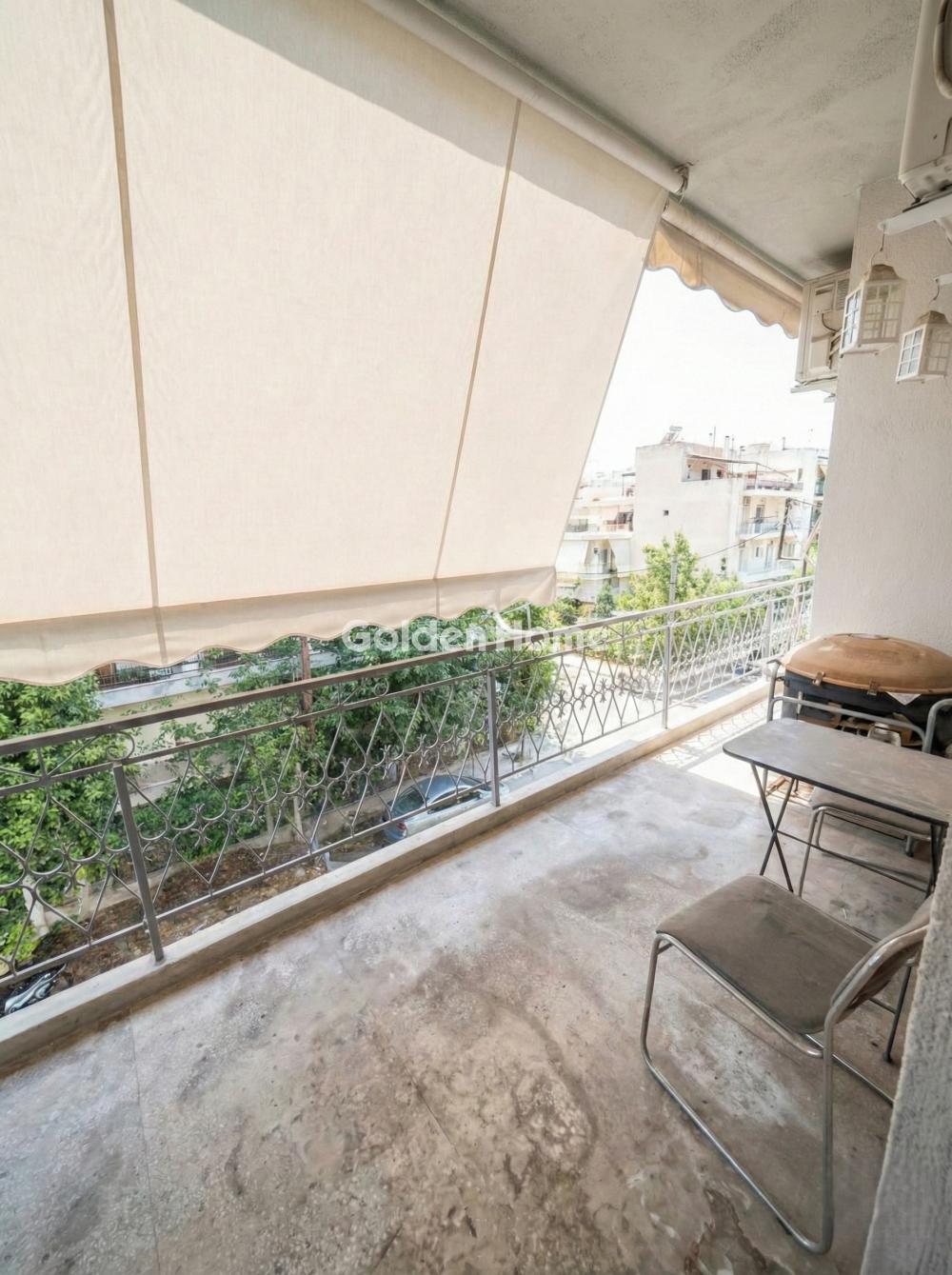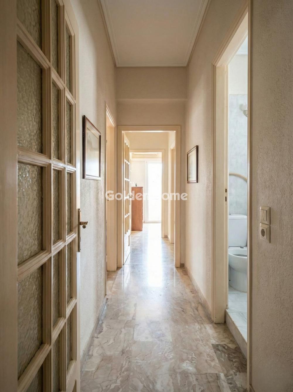 The property is located in an area of excellent quality, situated in front of a park and close to a school, with easy access via asphalt road and pedestrian walkway, while being a short distance from the sea. It is bright, corner-positioned and airy, with a northern orientation and mountain views. It features a security door, video intercom, alarm system, elevator and accessibility for people with mobility needs, while maintaining very low communal fees. Inside, it offers a spacious and bright living room connected to the dining area, a lounge area linked to the kitchen, a bright office space, two bathrooms with windows and an additional WC. The property includes autonomous heating with an oil burner, air conditioning, a triple-energy solar water heater and a satellite dish, while the window frames are aluminium and the floors are tiled. The outdoor areas include a garden, a storage room, large terraces and balconies with pleasant views, as well as awnings. The property is quiet, suitable for students and pet-friendly, without parking space or a swimming pool.