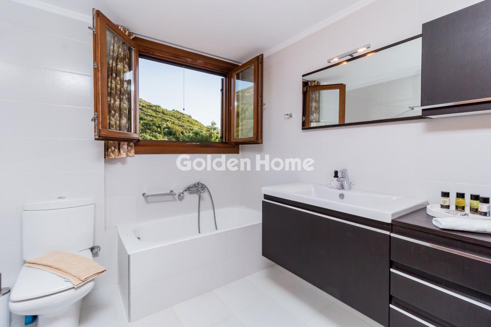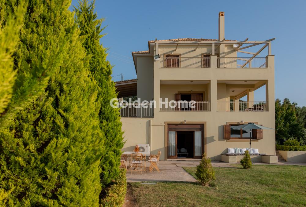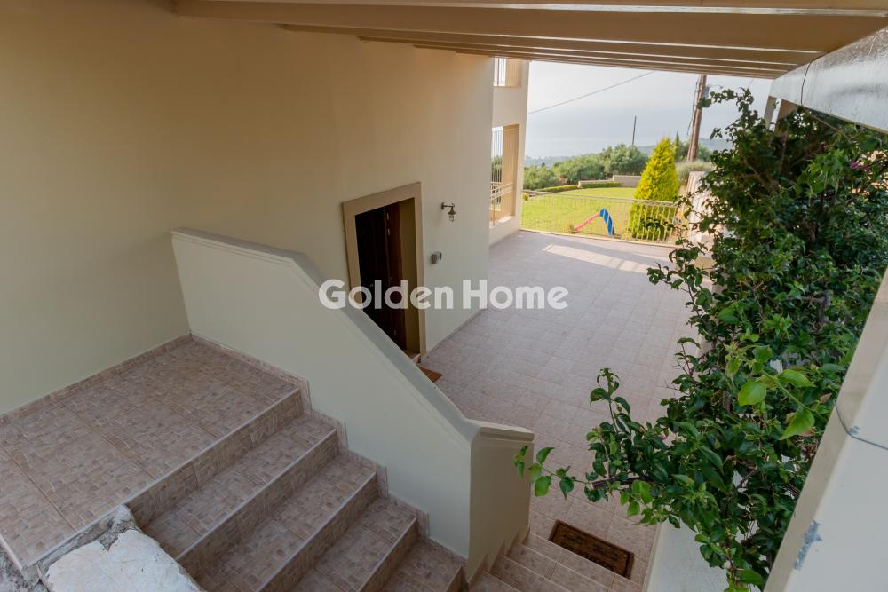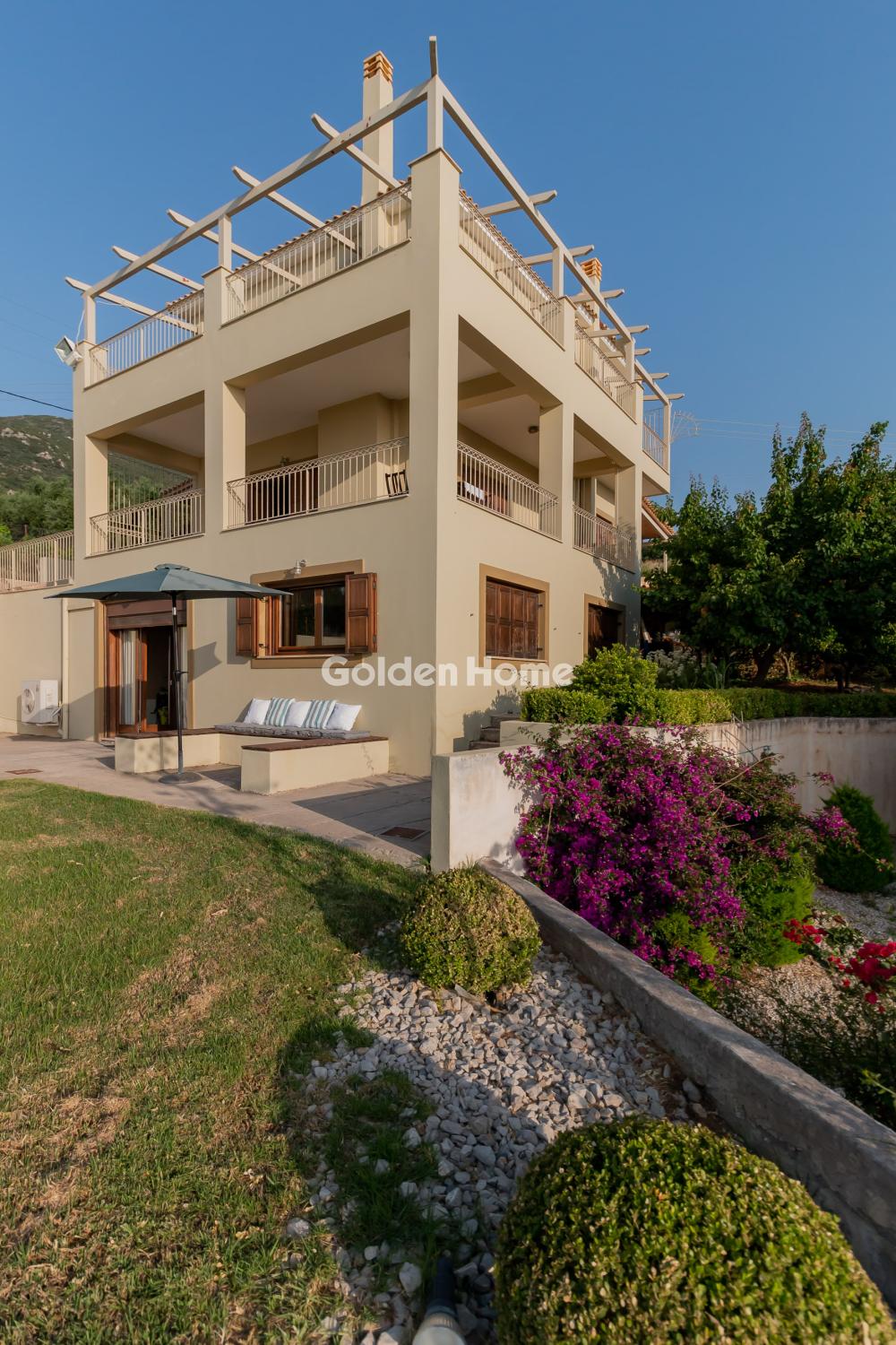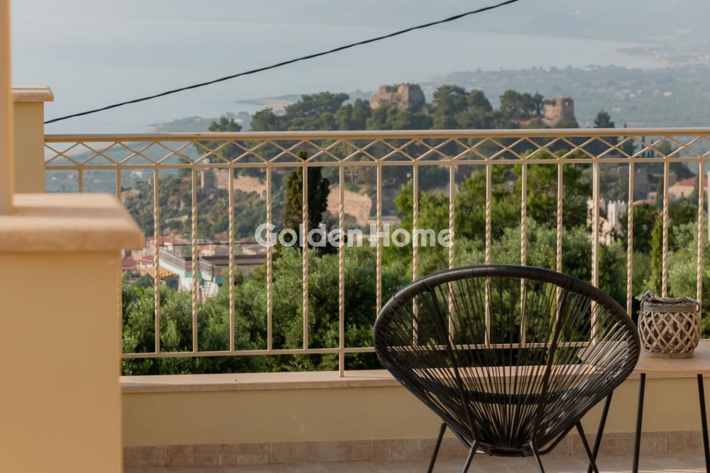 A luxurious three-level residence in the Upper Town of Kyparissia, a property of exceptional aesthetics and quality, with a total area of 245 sq.m., situated on a privileged 892sq.m. plot within the town plan. The residence is positioned on an elevated point, offering unobstructed panoramic views over the entire city of Kyparissia. Inside, the home features spaces that combine comfort with understated luxury: 4 spacious bedrooms, 2 elegant kitchens, a bright dining area, a comfortable living room, 2 bathrooms, a private parking area, a 35 sq.m. storage room, and an additional storage space in the basement. The residence is equipped with: Air conditioning, heating with an oil burner, an alarm system, infrastructure for an internal elevator, and connection to the municipal water supply and sewage system. The exterior area is a true retreat: a 600 sq.m. garden with manicured lawn and automatic irrigation, offering complete privacy and harmony with the natural surroundings. A property of rare quality, ideal for those seeking a premium home with exceptional views, great comfort, and distinctive character.