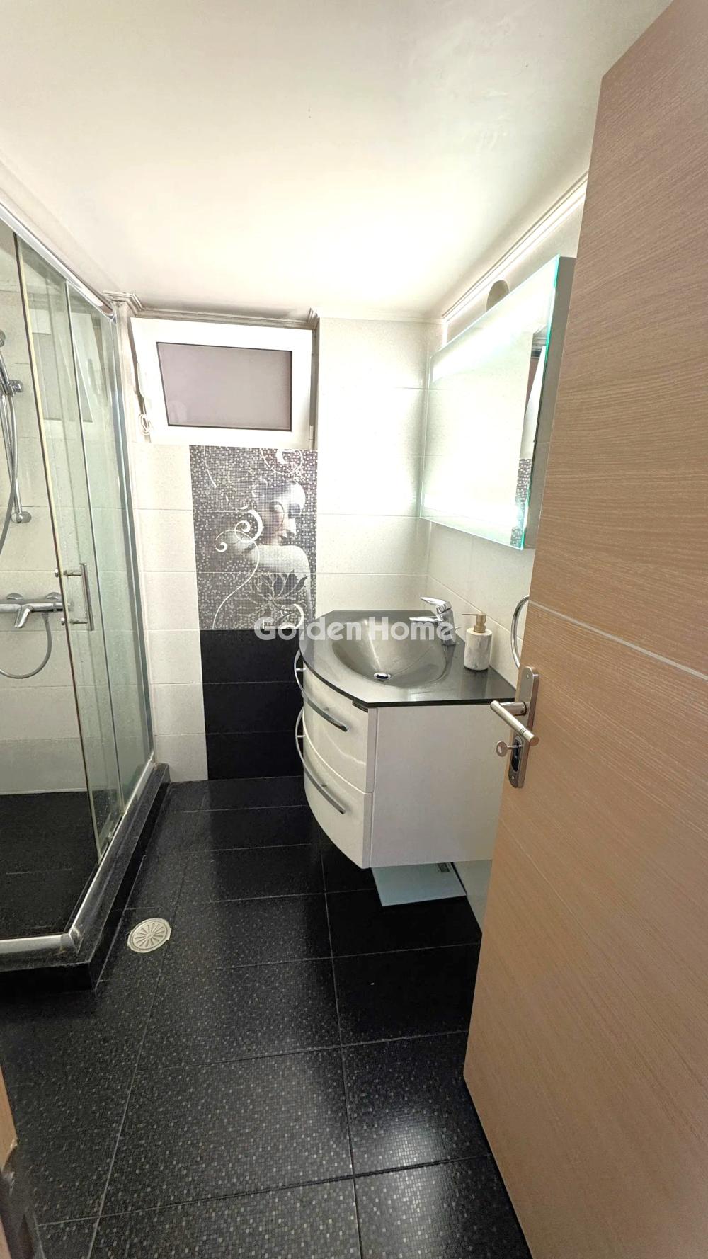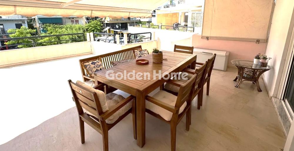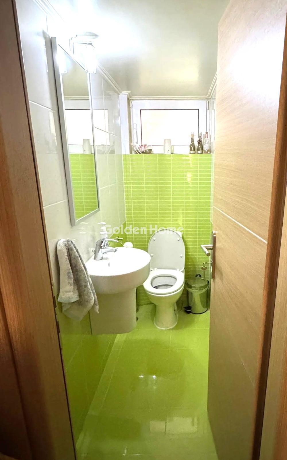 Apartment (80 sq.m.) located in Loutraki, Corinthia. The property consists of: An open-plan living room, dining area, and a modern kitchen with a pass-through counter/breakfast bar. 2 Bedrooms. 1 Bathroom and 1 WC (half-bath). Features and Amenities: Security entrance door (Armored door). Pre-installation for an alarm system. Aluminum frames with double-glazed windows and insect screens. 2 Air conditioning units. Awnings. Autonomous oil heating (separate boiler). Large veranda (100 sq.m.) which also includes a BBQ area. Location and Accessibility: The apartment building has a fully functional elevator. Easy parking in the surrounding area. It is close to schools, supermarkets, and the local market. It is only 350m from the city beach and 300m from the suburban railway (Proastiakos) terminal station.