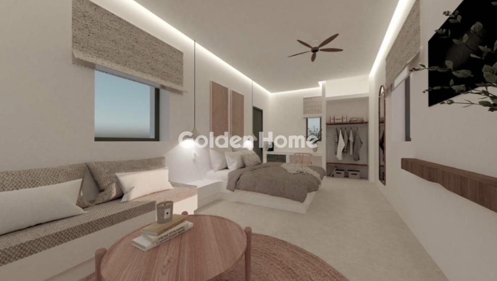 This boutique hotel extends over an area of 270 square meters and features 10 ultra-luxurious suites, each of which has a net area of 27 square meters.Designed with absolute attention to detail, this hotel is sure to appeal to even the most demanding guests. The complex consists of two independent buildings housing a total of 10 autonomous suites, of which the six ground floor suites feature private pools (8 square meters each) and spacious outdoor recreation areas of 40 square meters. The remaining four suites on the floor offer smaller outdoor areas with incredible sea views, as well as space for outdoor Jacuzzi or plunge pools. There is a communal 60 square meter swimming pool with a water feature (20 square meters) for additional relaxation. Next to the pool, the common area includes a provision for a bar and available space for a kitchen and seating, so the total area around the pool can be expanded. The construction of the complex is over 75% complete. Internal electrical, plumbing, painting work has been completed. The complex is already connected to DEH and DEYAM (electricity and water supply), there is a 40 cubic meter water tank, offering autonomy in case of water supply interruptions and enough space for installing a generator.