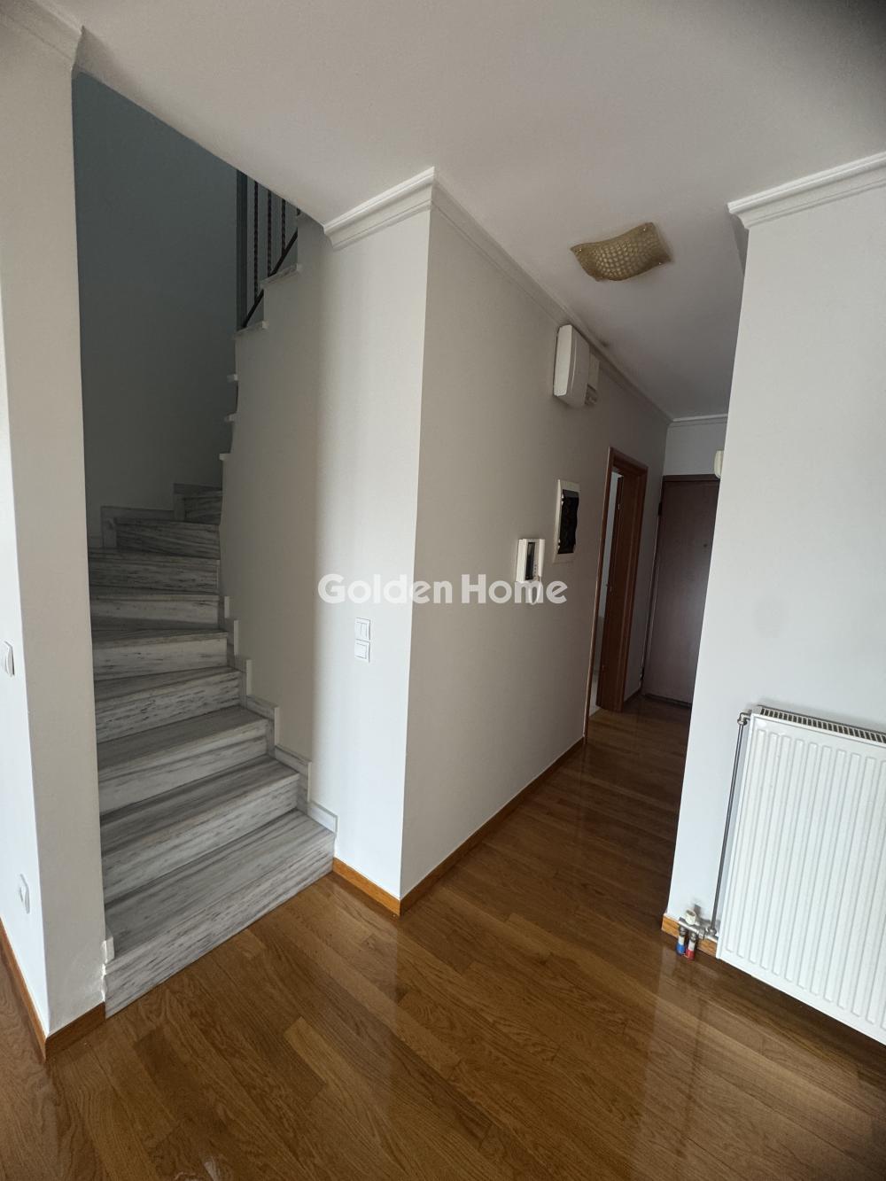 A stylish 2nd–3rd floor maisonette, with a total area of 130 sq.m., built in 2009, is available for rent, offering comfort, quality, and functionality. The property features a bright and spacious living room with a fireplace, an independent kitchen fully equipped with built-in electrical appliances, one main bathroom, and three comfortable bedrooms, one of which includes an additional en-suite bathroom. The residence offers autonomous natural-gas heating, air conditioning units in all bedrooms, aluminum window frames with screens and shutters, as well as wrap-around balconies, one of which includes a designated barbecue area. It is also equipped with a security alarm system for enhanced safety. The property includes an underground parking space and a storage room, and small pets are accepted. Its location is ideal, as it is very close to a park, schools, public transportation, and main road arteries, ensuring excellent accessibility. This property is an excellent choice for families seeking a comfortable, functional, and high-quality permanent residence.