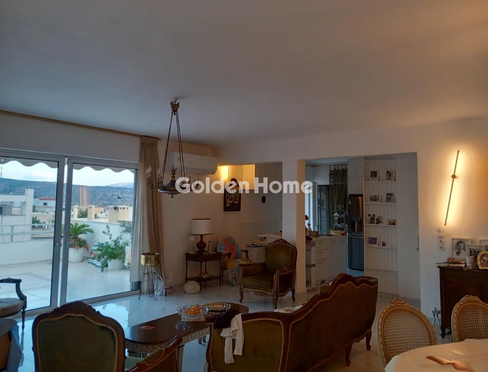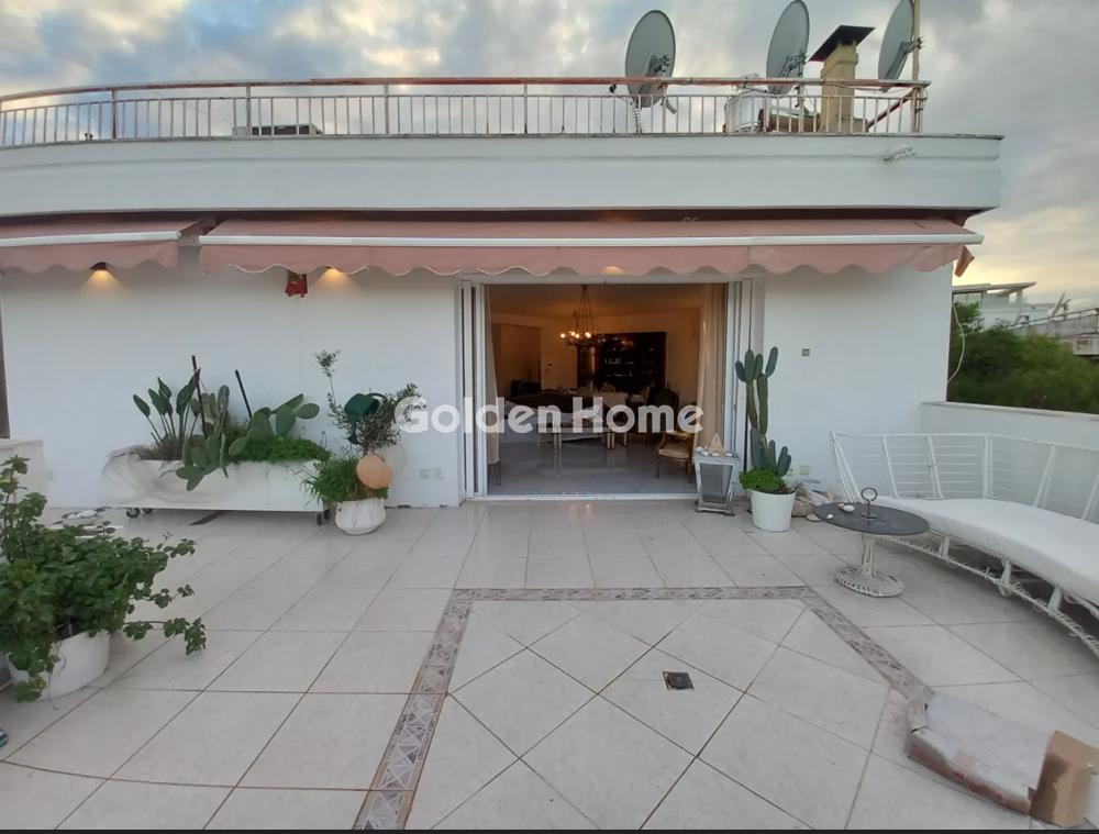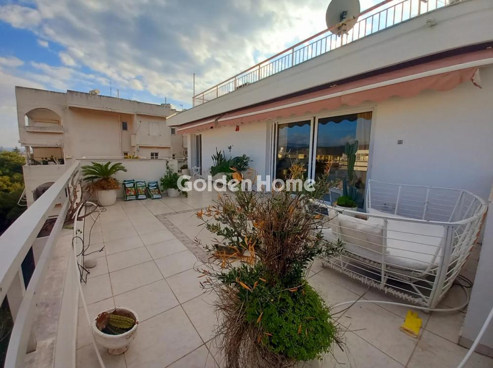 Penthouse apartment of 130 sq.m. with impressive 100 sq.m. terraces, fully renovated, offering a total living feel of 230 sq.m., in an excellent location in Varkiza. The property features an open-plan, exceptionally bright living area with large glass windows and views of pine trees, mountains and sky, as well as a partial sea view from the interior and panoramic sea views from the rooftop terrace. It includes two very spacious bedrooms with oak flooring, a walk-in closet in the master bedroom, two large bathrooms, a fireplace, autonomous heating, thermal insulation and an alarm system. Additionally, the property offers electric awnings, two storage rooms and two parking spaces. Located just a 5-minute walk from beaches, local shops and public transportation, combining comfort, quality and a prime location.