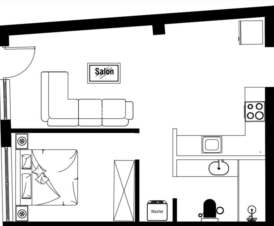 | Kitchen : | Bright, Modern, With window, With furniture for fitted devices |