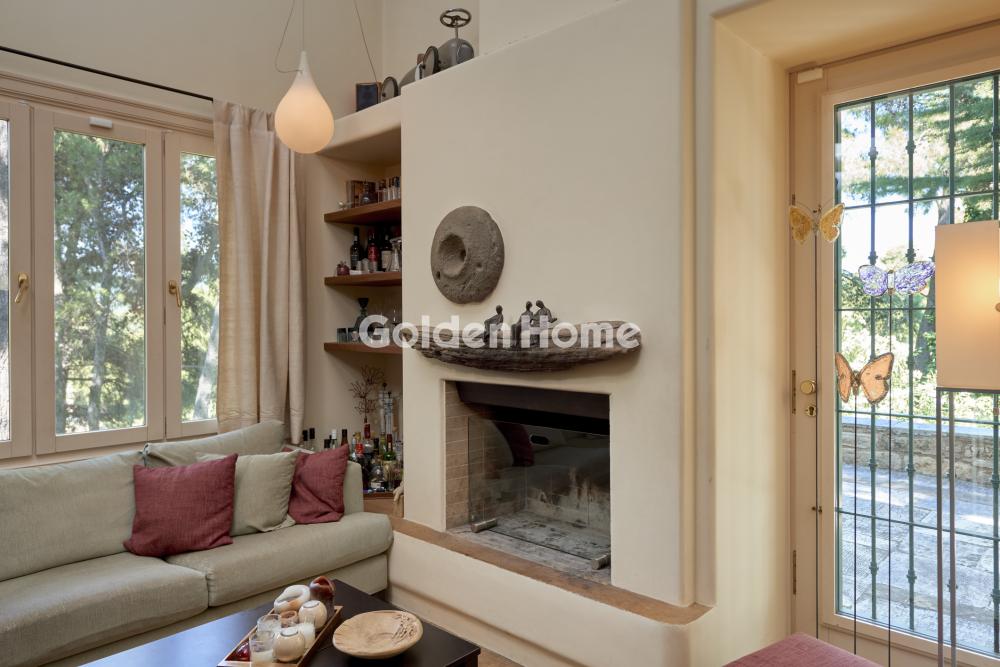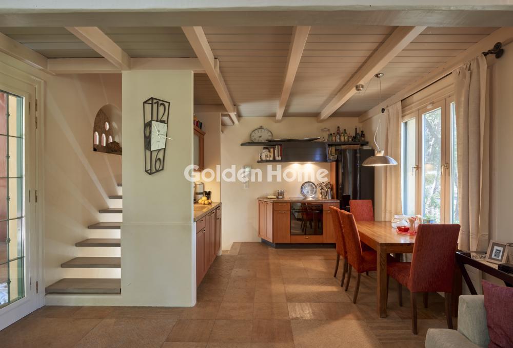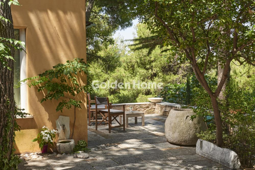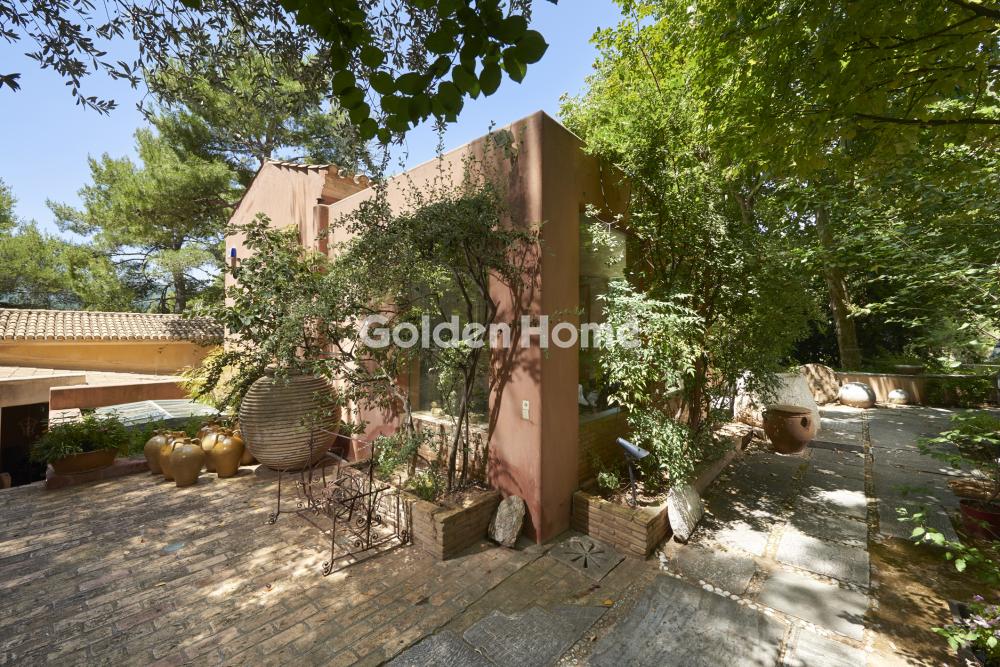 Exceptional Detached Residence of Distinctive Architecture Designed by a well-known artist from Tinost – a work of art immersed in nature A truly unique residence, crafted with exceptional materials and great attention to detail, set within a lush, tranquil, and privileged environment in Dionysos, Attica. The property consists of two independent buildings (ideal for a large family, partial rental, or guest accommodation), with the option of very easily unifying them into one grand, impressive residence. Features & Layout: 4 bedrooms (including a Master bedroom with en-suite bathroom, separate office space & fireplace) 2 independent living rooms 2 fully equipped kitchens Independent studio/guest room with direct access to the garden Laundry room 2 bathrooms + 1 guest WC 3 impressive fireplaces – warmth and atmosphere all year round The Garden – a small paradise: Large swimming pool with a depth of 3 meters (ideal for swimming & relaxation) Fully landscaped outdoor kitchen area featuring: Large marble dining table Built-in BBQ Traditional wood-fired oven – perfect for authentic aromas & unforgettable meals Year of construction: 1997 Quality & Comfort: Autonomous oil heating Wooden window frames with double glazing Thermal insulation Marble, stone & wooden floors – materials that highlight the property’s unique architecture Additional Advantages: Covered parking space for 2 cars within the plot Option to purchase an adjacent plot of equal size (800 sq.m.) at a highly attractive price – ideal for expansion, an additional pool, sports court, or guest facilities A rare opportunity in Dionysos for those seeking art, quality of life, privacy, and absolute harmony with nature, just minutes from Athens. Ideal both as a permanent residence and as a luxury holiday home or investment property. Interested? Contact us for more details & photos!