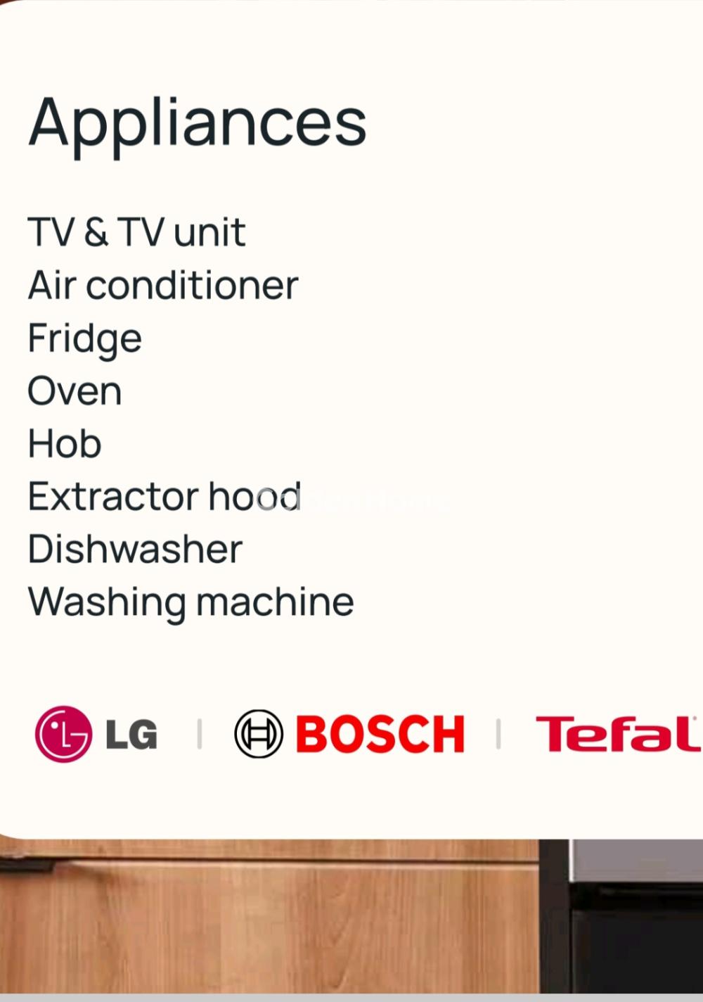 | Electrical devices : | Fridge, Washing machine, Kitchen, Oven, Microwave oven, TV |