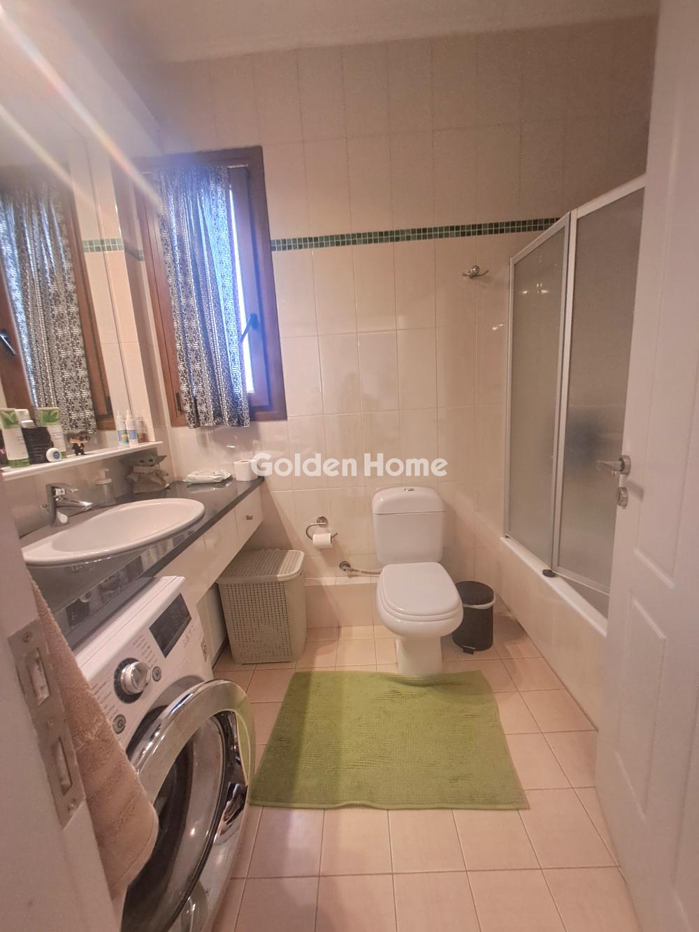 For sale, a bright and through-apartment of 100 sq.m. in Vari, located in a quiet general residential area, close to schools, the local market and public transportation. The property is an ideal choice both for a primary residence and for holiday use. It features a large open-plan living room with dining area, fireplace and comfortable, light-filled spaces, as well as a functional kitchen with a breakfast bar, window and built-in electrical appliances (oven and cooker). The apartment includes two bedrooms, one of which is a master bedroom with a private en-suite bathroom, as well as an additional bathroom with window and bathtub. It has tiled floors, aluminum window frames, a security door, alarm system and video intercom. Heating is autonomous with an oil boiler, and the property is also equipped with air conditioning and a solar water heater. Key advantages include two enclosed parking spaces and a 5.5 sq.m. storage room. A quality property in an exceptionally quiet environment, with direct asphalt road access and all essential infrastructure nearby.