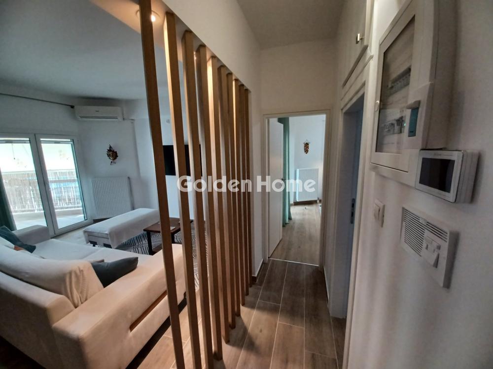 ​For rent in Kavouri, Vouliagmeni: A fully renovated (2023) 56 sq.m. apartment on the 3rd floor, originally built in 1977, situated in one of the most prestigious and verdant locations of the Athenian Riviera, just 500 meters from the coast. The property combines absolute tranquility with immediate access to the sea, featuring an east-south orientation and unobstructed views of a park and forest. The layout includes one bedroom, an independent kitchen, a bathroom with a window, and a large open-plan living and dining area, with all rooms leading to balconies equipped with brand-new awnings. It is offered fully furnished and equipped with all electrical appliances, featuring granite tile and oak flooring, aluminum frames with double glazing, and a security door. Heating is autonomous via a recently installed heat pump, complemented by air conditioning units in all rooms, a solar water heater, and an oil boiler. The apartment is surrounded by a large communal garden, ensuring a high quality of life within a lush green environment. Available exclusively for long-term lease.