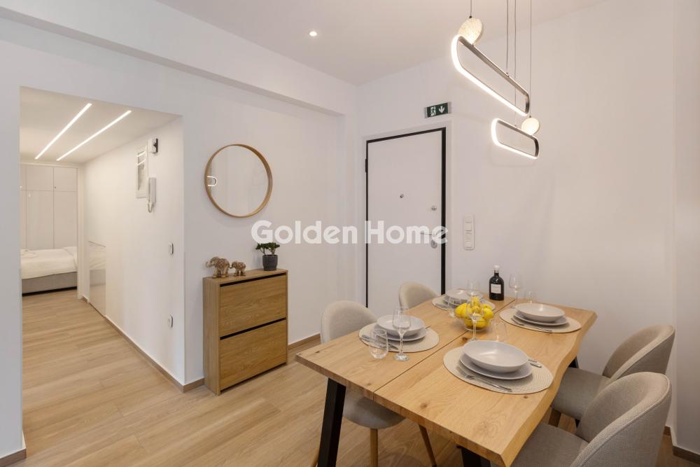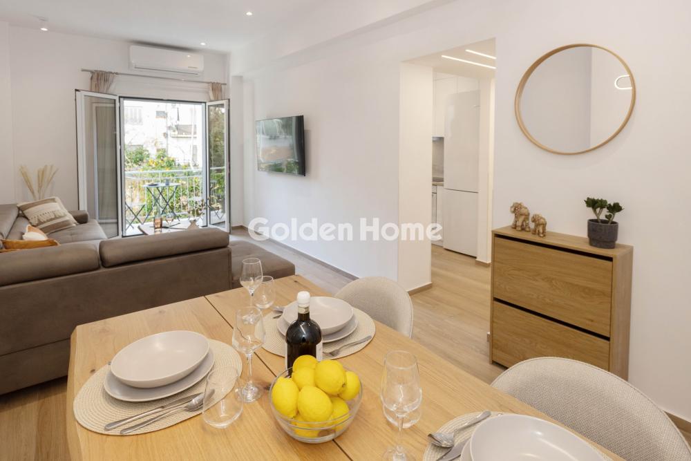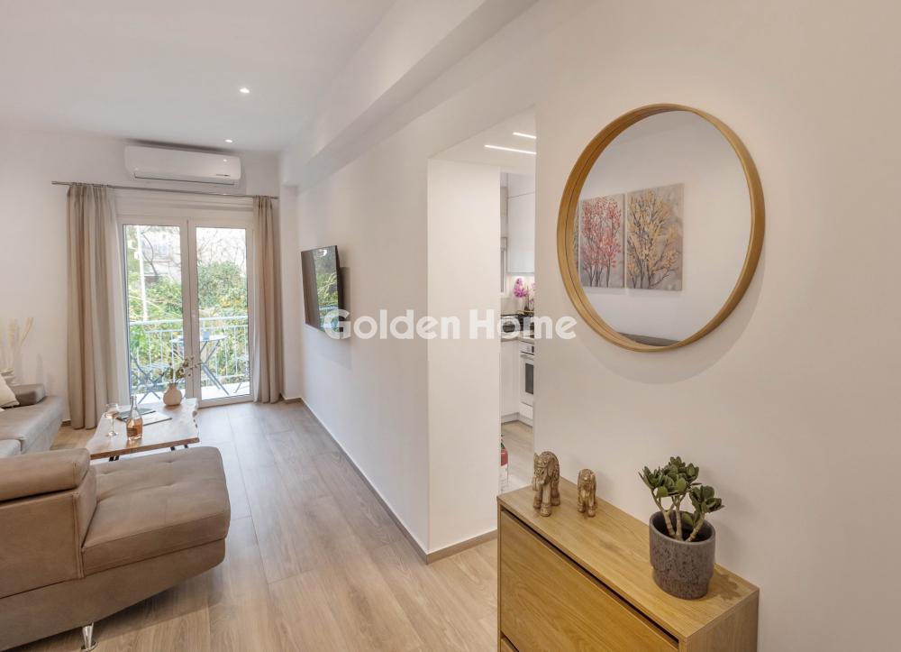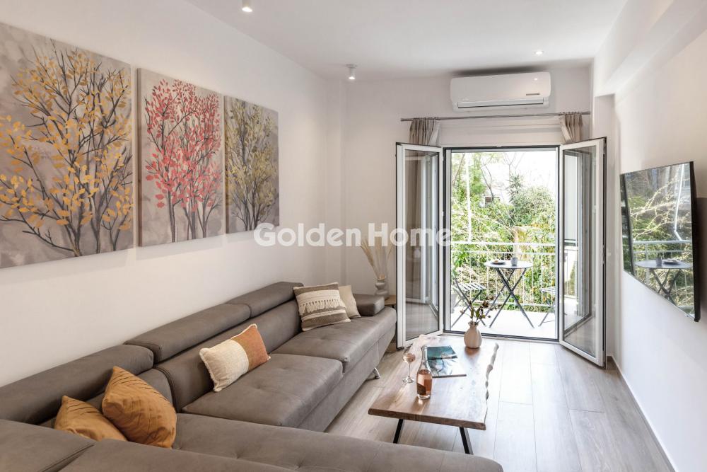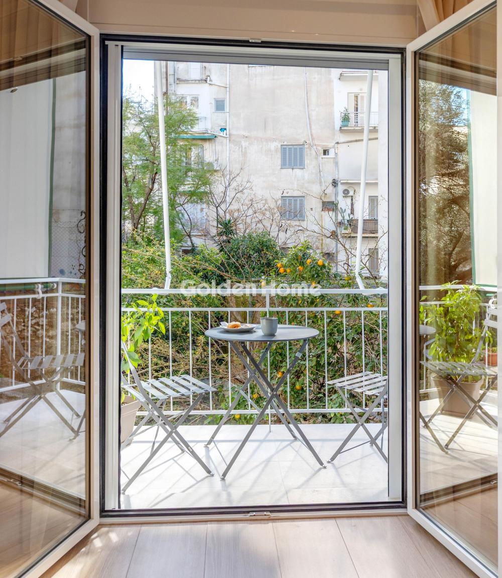 Fully renovated and luxuriously furnished 53 sq.m. apartment, semi-basement level, located in Kypseli, in an excellent location close to Kypseli Square, the local market and public transportation. Bright, with an excellent layout, ideal both for investment purposes and owner-occupation. The apartment consists of an open-plan living and dining area with access to a balcony, a kitchen with balcony access, a bathroom with heated towel rail, and a bedroom with its own private balcony. It features a total of three large balconies with an east-facing orientation. The property is delivered fully equipped with 18,000 & 12,000 BTU air conditioning units, branded electrical appliances, small appliances, Europa aluminum electric window frames, awnings, and security cameras. It includes a corner sofa bed and a double bed measuring 160cm × 200cm.