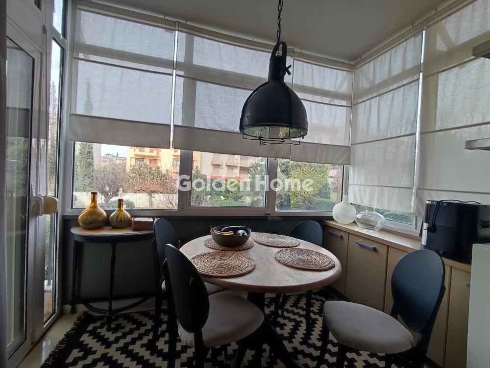 For sale: a beautiful luxury maisonette of 145 sq.m., built in 2005, located in Pylaia, in an excellent central area with open views and greenery. A residence that offers quality of life, comfort, and a privileged location. This is a high-aesthetic property of excellent construction quality, combining comfort, functionality, and abundant natural light, ideal for demanding buyers. It is dual-aspect and situated in an area perfectly suited for families, close to schools, supermarkets, with a bus stop nearby and easy access to a metro station. The apartment is part of a 2005 apartment building and is developed over two levels connected by an internal staircase: Elevated semi-basement 1st floor It is the only apartment in the building with direct access to the large, well-maintained communal garden, offering a unique “house-like” living experience. On the mezzanine level, there is an impressively spacious living room with dining area and fireplace, featuring large openings that ensure natural light throughout the day. The large front balcony, equipped with awnings and insect screens, offers unobstructed views and a sense of openness. On the same level, there is a large bathroom, a comfortable bedroom with balcony, and a spacious kitchen with ample storage and a separate dining area. This dining space is particularly charming, featuring floor-to-ceiling glass doors with views of the rear garden. Via the internal staircase, we reach the lower level, which includes one bedroom, an additional flexible space that can be used either as a second living room or an extra bedroom, a large bathroom, and a storage room with space for a washing machine. From this level, there is access to a balcony-type area and to the communal courtyard with a landscaped garden. Features: 3 large open balconies (front & rear) with awnings and insect screens Garden & communal courtyard Spacious living room with dining area and fireplace Parking space Alarm system Air conditioning units Autonomous oil heating & pre-installation for natural gas Elevator Large built-in wardrobes in every bedroom For interested buyers, the apartment can be delivered with all electrical appliances and selected furniture. --------------------- Golden Home Real Estate Ionos Dragoumi 4, 54623, Thessaloniki Email: thessaloniki@goldenhome.gr Web: https://goldenhome.gr Tel: +30 2314 405900 Mob: +30 694 764 5562
