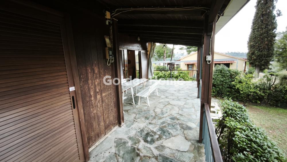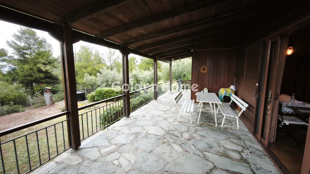 Detached house in an excellent location in Chalkoutsi, on the top of a hill with unlimited sea & mountain views, renovated, large garden, alarm, air conditioning, with a storage room of 18 sq.m. where there is also a second bathroom, automatic irrigation and a water tank. It is offered furnished and with all electrical appliances.