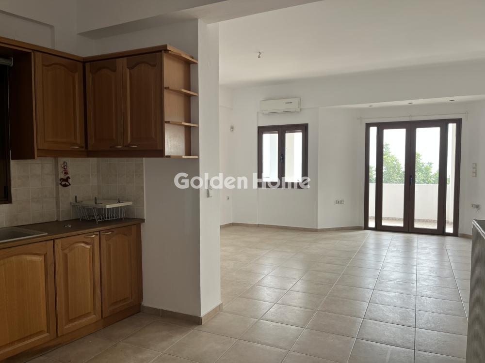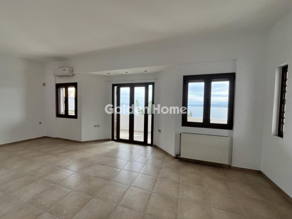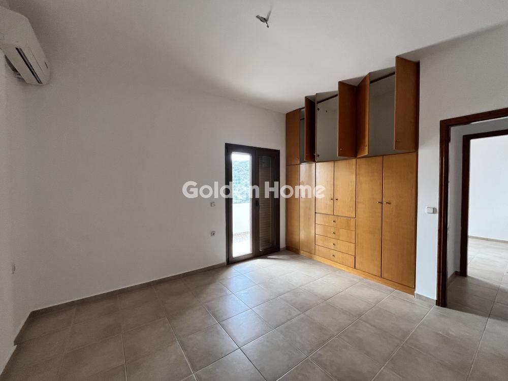Ground floor apartment for rent in the Pantanassa area with unparalleled sea and mountain views. It consists of a large living-dining room, a bright kitchen with furniture for built-in appliances, two comfortable bedrooms, all with built-in wardrobes and direct access to the terrace. The terrace is single-room around the perimeter of the property. In terms of heating, there is a fireplace in the living room, in each room there is A/C (3 in total), oil central heating with meter, autonomous solar and electric water heater. There is also a large storage room of approximately 50-60 sq m. and a closed parking space for approximately 1 space, but there is also its own parking space outside. Pets allowed. Very quiet area. Direct access to the national. In the same complex there is another apartment on the 1st floor. Shared large garden. The distance from the sea is geographically 200 meters, by car it is 3 minutes. Immediately available.