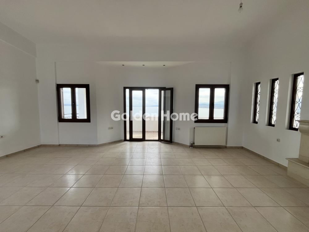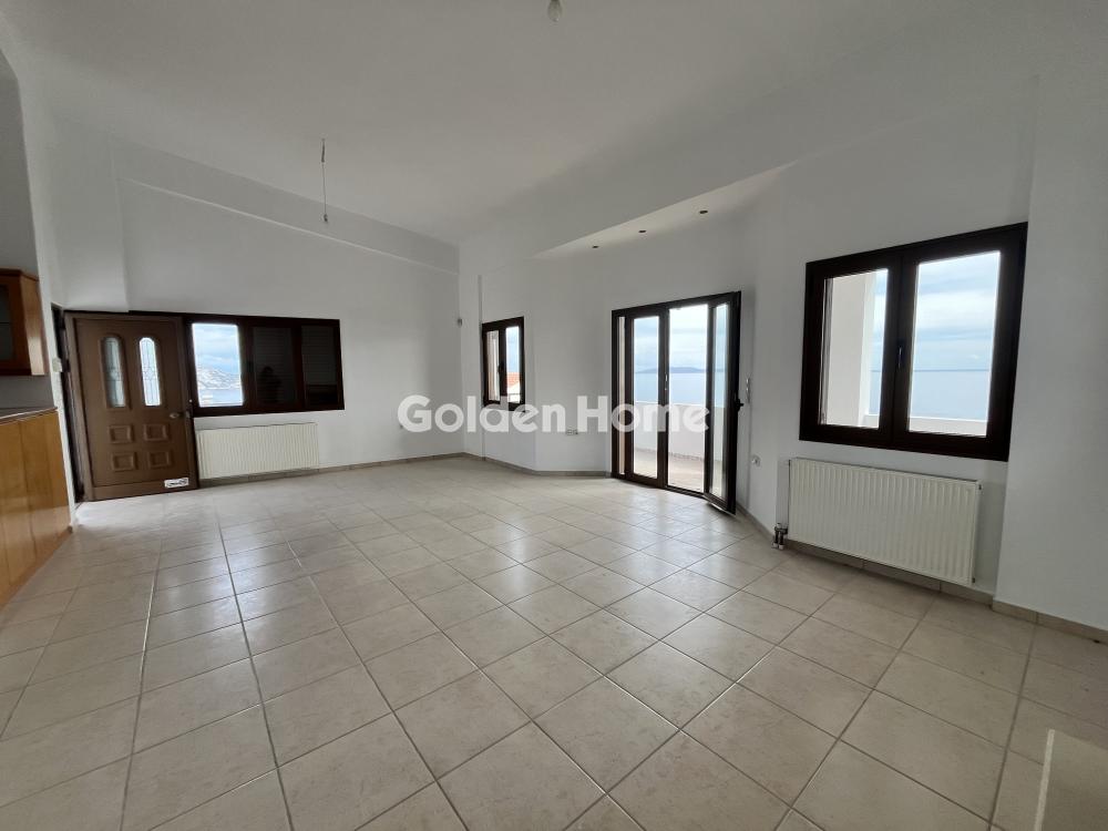 First floor apartment for rent in the Pantanassa area with unparalleled sea and mountain views. It consists of a large living-dining room, a bright kitchen with furniture for built-in appliances, two comfortable bedrooms, all with built-in wardrobes and direct access to the terrace. The terrace is single-room around the perimeter of the property. For heating, there is a fireplace in the living room, oil central heating with meter, autonomous solar and electric water heater. There is also a large storage room of approximately 50 sq.m. and open parking for approximately 3 spaces. Pets allowed. Very quiet area. Direct access to the national. In the same complex there is another apartment on the ground floor. Shared large garden. The distance from the sea is geographically 200 meters, by car it is 3 minutes. Immediately available.