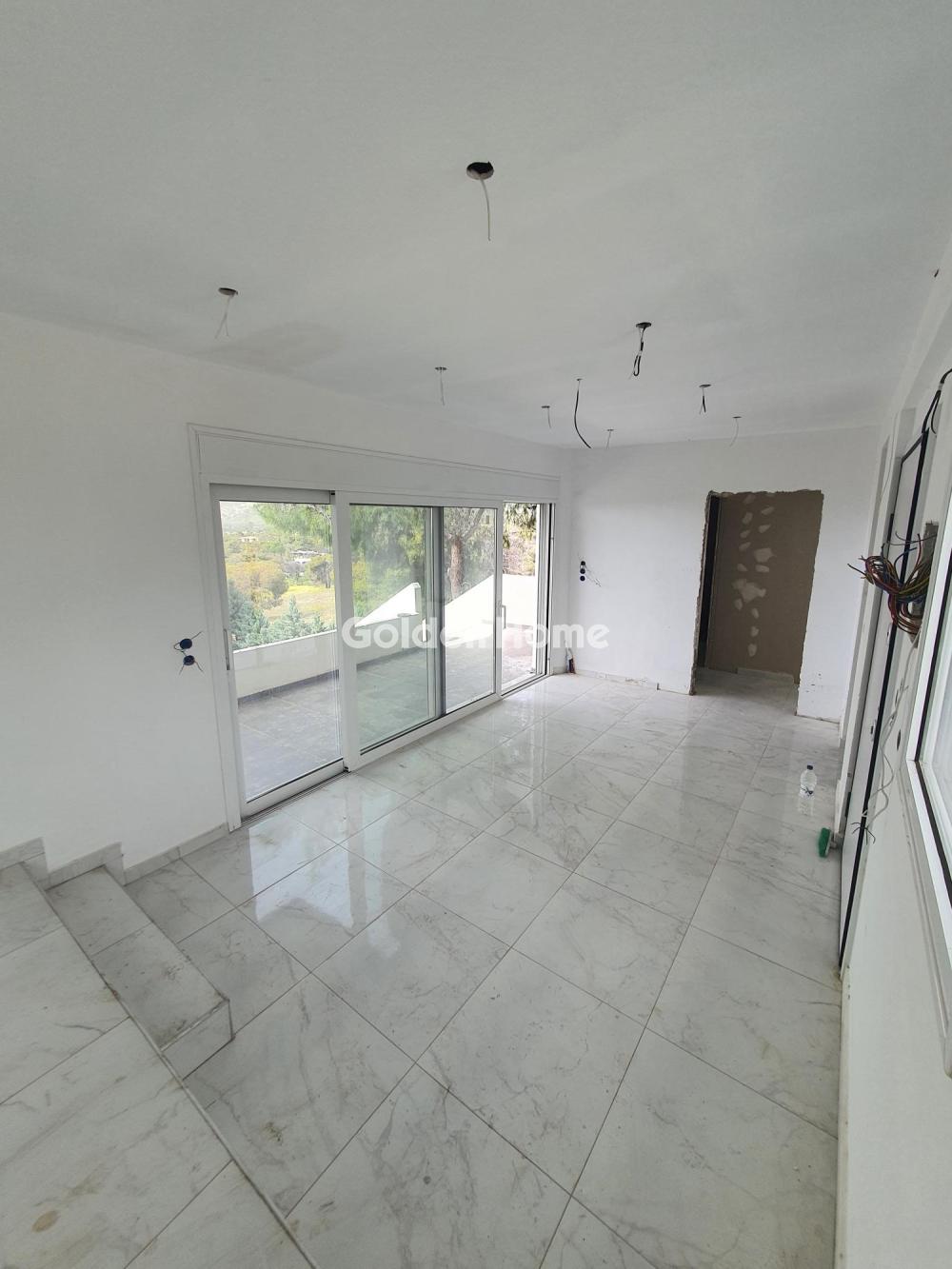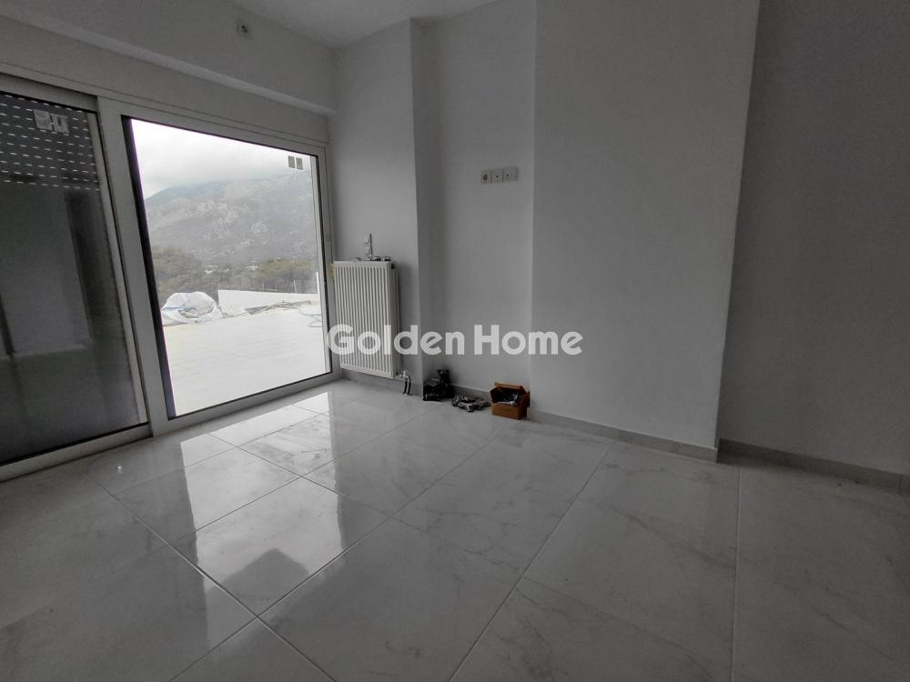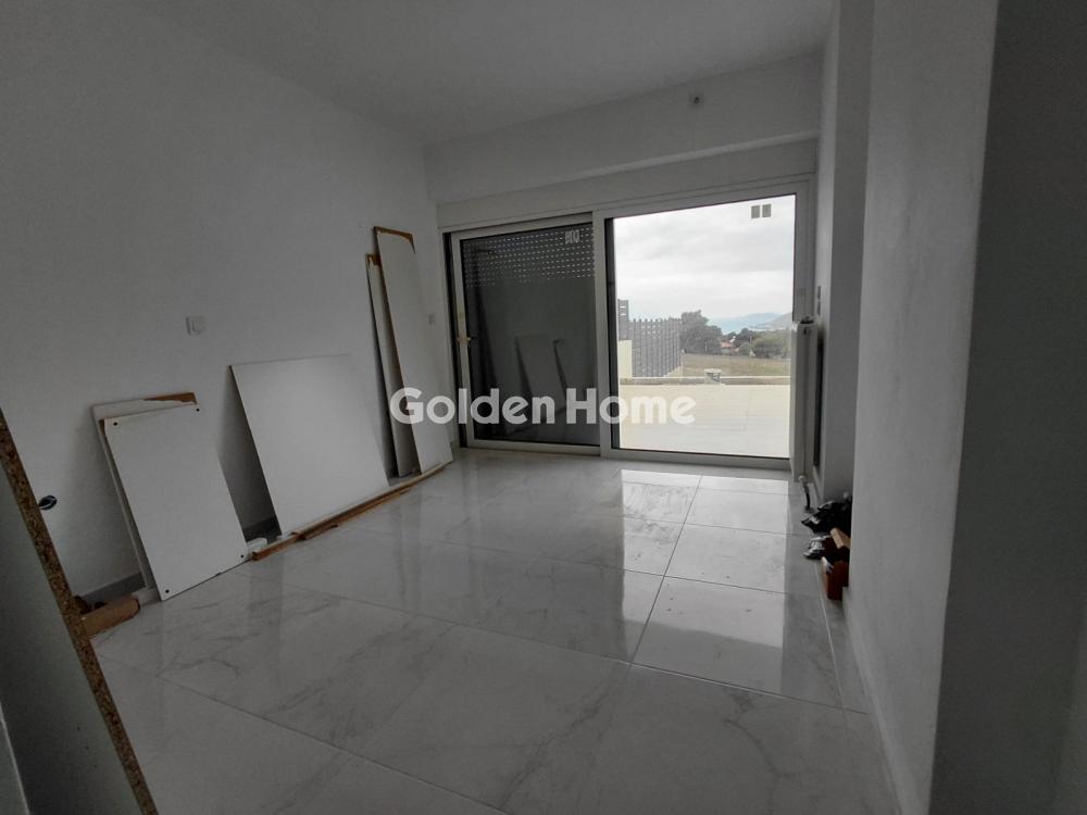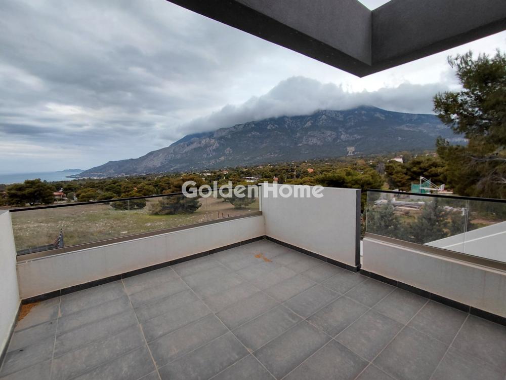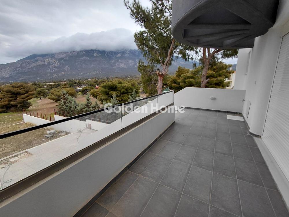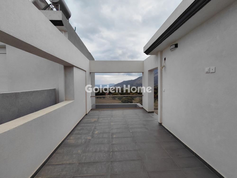 Available for rent, a stunning two-level 108 sq.m. duplex penthouse (1st & 2nd floor) in Loutraki for €1,600 per month, featuring unique panoramic views, a distinctive architectural design, and expansive balconies that provide abundant natural light for a sophisticated living experience.