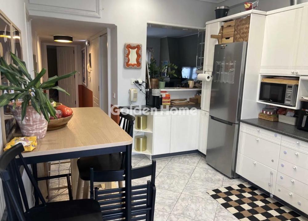 Second-floor apartment (no elevator), 109 sq.m., fully renovated, unfurnished, dual-aspect and exceptionally bright. It features two spacious bedrooms with large built-in wardrobes, one bathroom and an additional WC, a functional kitchen, and a comfortable living–dining area with a fireplace. There is also a very large loft space, ideal for extra storage. The property offers autonomous underfloor heating with oil, double-glazed aluminum window frames with insect screens, solar water heater, security door, video intercom system, electric awnings, and fiber optic installation. It is equipped with three air conditioning units, as well as electrical appliances in excellent condition (Bosch refrigerator, Bosch dishwasher, and Grundig washing machine). An ideal choice for comfortable and high-quality living, in a well-maintained and functional home