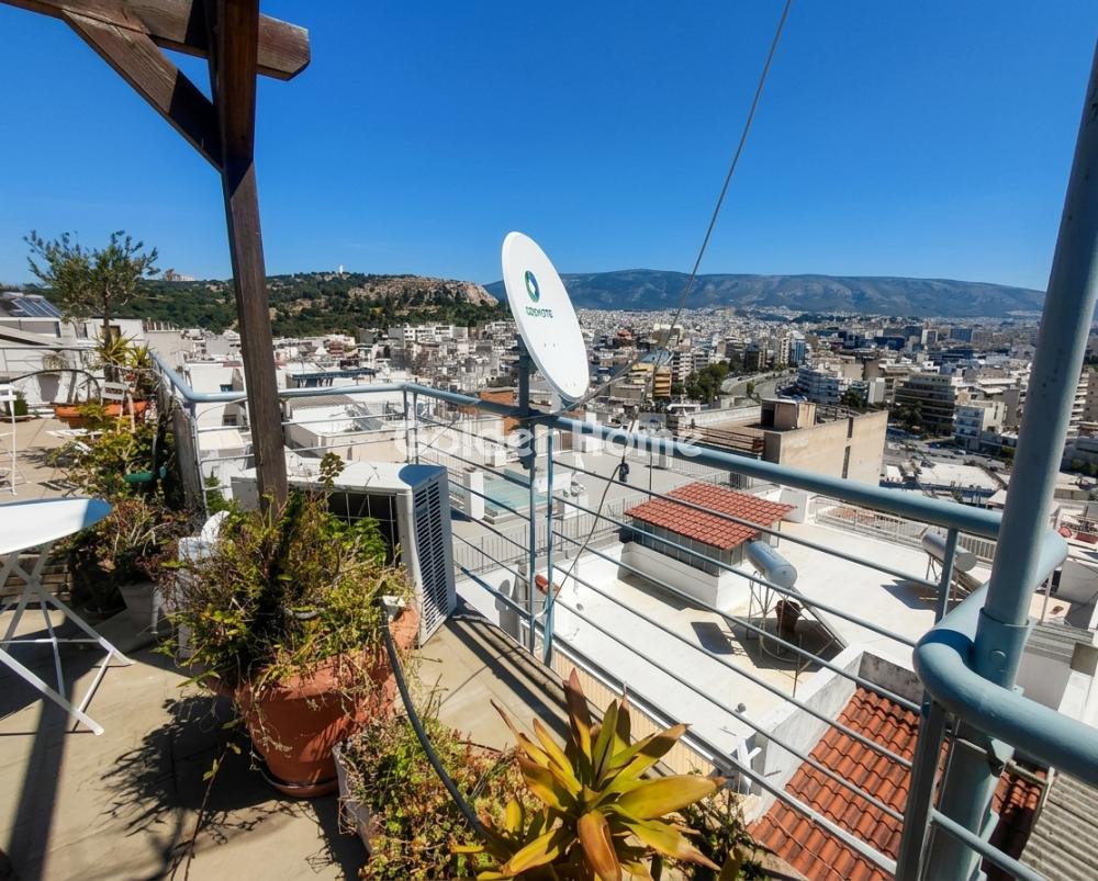 Petralona, area of the green Hill of Dexameni and traditional restaurants, cafes of the area, it offers a sense of the lost Athenian neighborhood. A 53 sq m property on the first floor, with stairs. One bedroom with balcony, living room with balcony and kitchen also, which can be unified. Also, shared use of the terrace between three co-owners, with pergola and BBQ & endless sea view for romantic hot summer nights. View of the sea and the Acropolis. With individual gas heating and a/c, in one of the quietest and most beautiful spots of Ano Petralona that offers a sense of tranquility, Metro 550 m, train and buses.