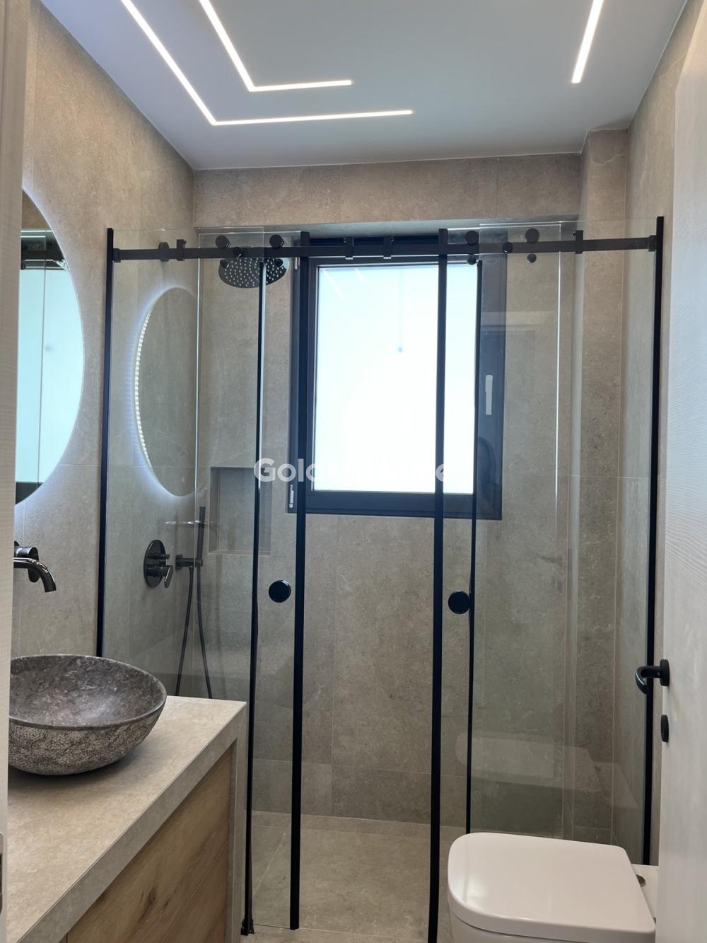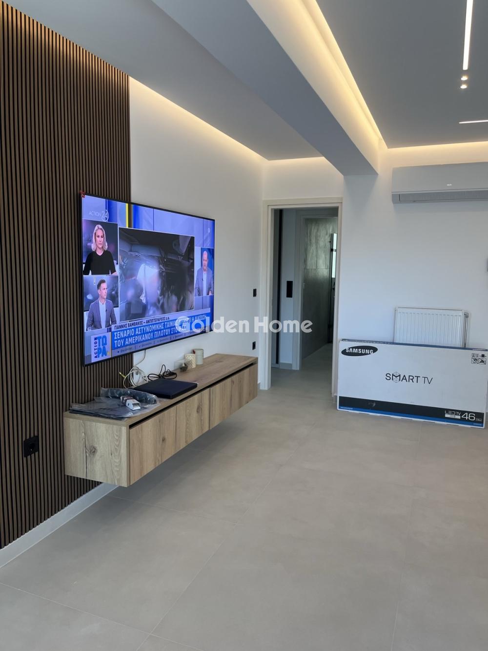 Floor apartment of 95 sq.m. on the third floor, located in a newly built residential building on a 1,000 sq.m. plot in Agios Dimitrios. The property features an open-plan living room and kitchen, constructed with high-end, premium materials, hidden lighting throughout, modern cabinetry, and a spacious balcony. The living area is comfortable and includes an energy-efficient fireplace with subtle concealed lighting. It includes two bathrooms with windows. It offers two comfortable bedrooms with large wardrobes featuring integrated concealed lighting and spacious balconies. Additionally, there are two extra storage closets in the hallway. It includes autonomous natural gas heating with a boiler on the balcony, three air conditioning units, and a fully equipped kitchen with dishwasher, washing machine, refrigerator, stove, microwave, and extractor hood, as well as installed lighting fixtures. The building has been constructed using top-quality materials. The apartment is fully completed and immediately available. Furthermore, it provides a closed parking space in the pilotis with an electric vehicle charging station, as well as a storage room in the basement. The location is excellent, close to supermarkets, schools, and metro access.