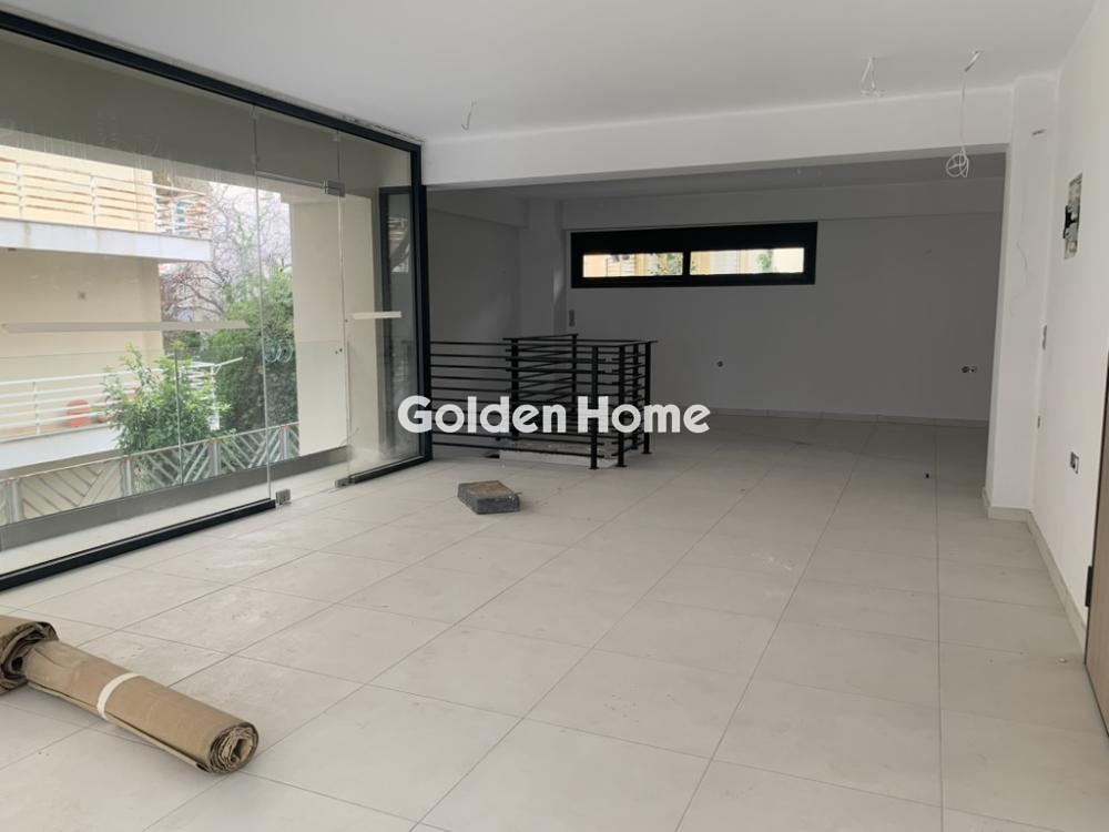 Newly built ground-floor retail store 186 sq.m. + 120 sq.m. mezzanine, frontage on a main road in Marousi, high visibility, bright, open-plan space, wit four parking spaces in the front yard