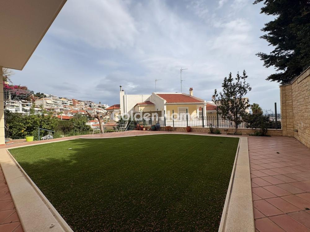 An exceptional ground-floor apartment in Dikigorika Voula, located in one of the most prestigious and tranquil areas of the Athenian Riviera, offering stunning sea views and an elevated quality of living. The main residence spans 132 sq.m. and features two spacious bedrooms with the option to create a third, two comfortable bathrooms, and an impressively large living room ideal for both relaxation and entertaining. The generous layout and abundant natural light enhance the sense of luxury and comfort throughout. A key highlight of the property is the independent 25 sq.m. office space, complete with its own bathroom, making it ideal for professional use or as a guest suite, ensuring complete privacy and autonomy. The outdoor area stands out with its large private garden, creating a lush and serene environment. The swimming pool is fully constructed with all necessary installations in place, currently covered, offering the flexibility for easy reactivation according to the new owner’s preferences. In the basement, the property includes two parking spaces, as well as an additional area that can accommodate a live-in housekeeper or be adapted for multiple uses. This residence perfectly combines privacy, functionality, and refined living, making it an ideal choice for those seeking a luxurious lifestyle in one of Voula’s most sought-after locations.