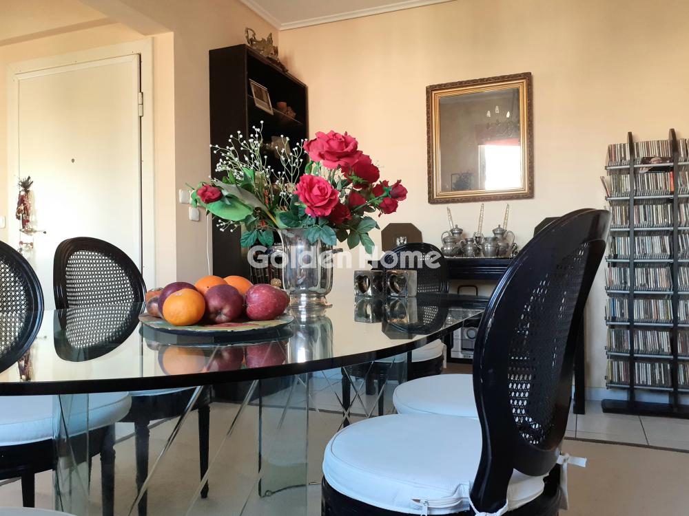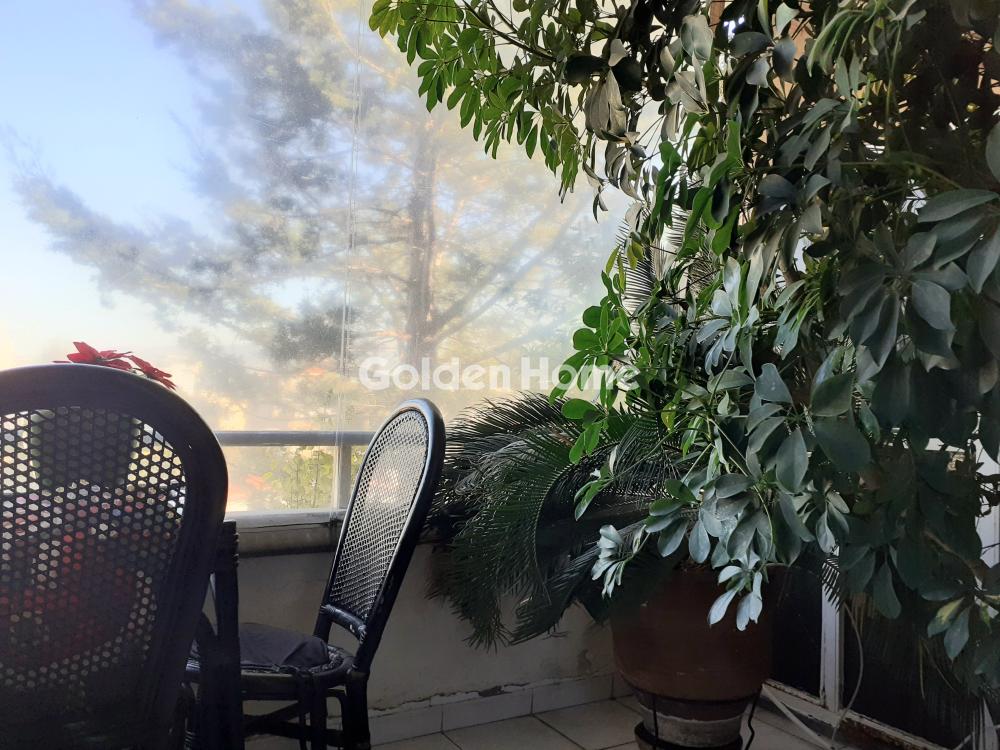For rent: an exceptional 104 sq.m. penthouse apartment, fully furnished and equipped, located on the 4th floor. This is a bright, dual-aspect residence with unobstructed views and spacious outdoor areas. The layout includes a generous open-plan living and dining area, a separate kitchen, two large bedrooms, one bathroom, and one WC, offering both functionality and everyday comfort. The property features a security door, fireplace, autonomous natural gas heating, air conditioning, a dual-energy boiler, large built-in wardrobes, and spacious verandas with awnings at both the front and rear. It also includes one parking space and access to a large garden. Situated in a quiet area of Kato Chalandri, it is close to public transport, schools, and the local market, with easy access to main roads. It is just a 5-minute drive from the “Nomismatokopio” metro station.