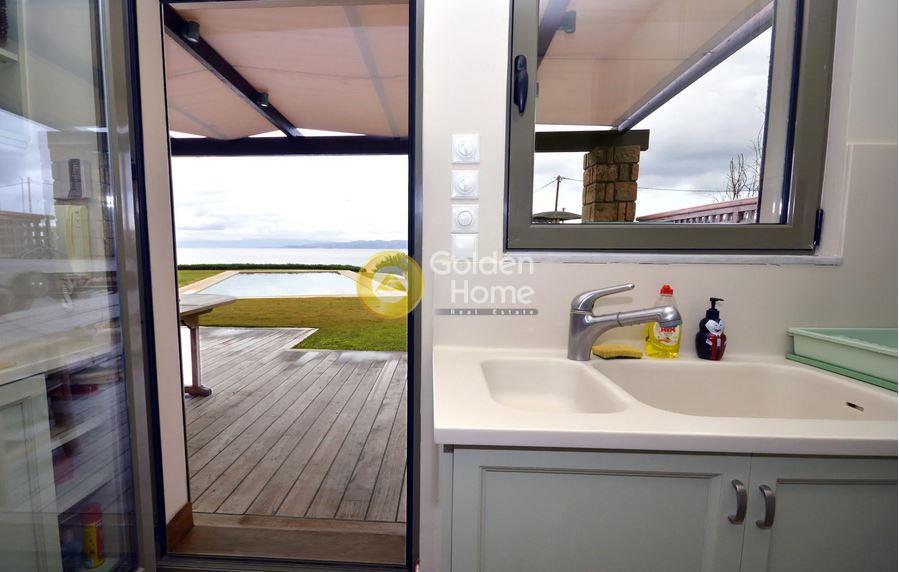 An excellent detached villa right in front of the beach at Aegina Island which is located 35 min. by boat from Piraeus. The plot is 700m2 and the building in two levels is 270m2. It has 5 bedrooms, 5 bathrooms, dressing and laundry rooms.