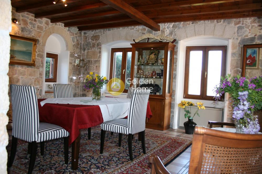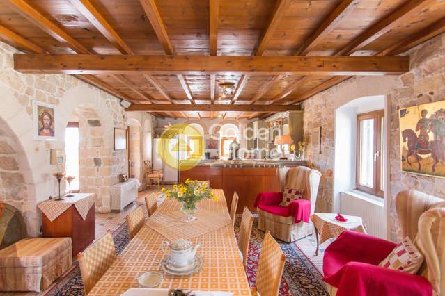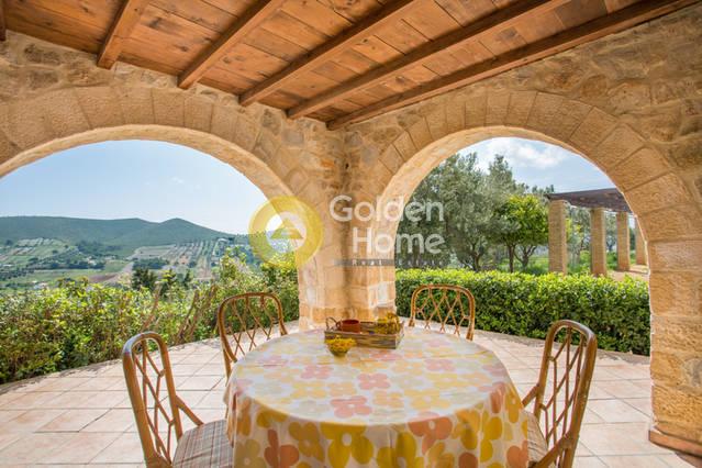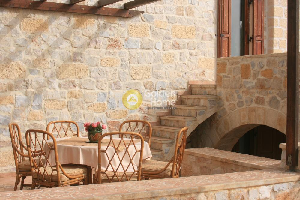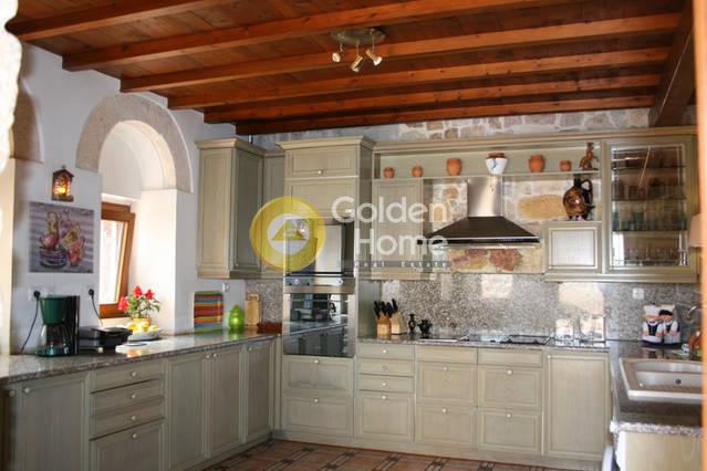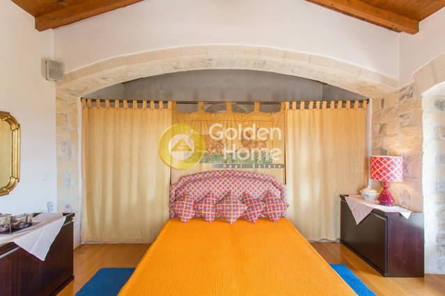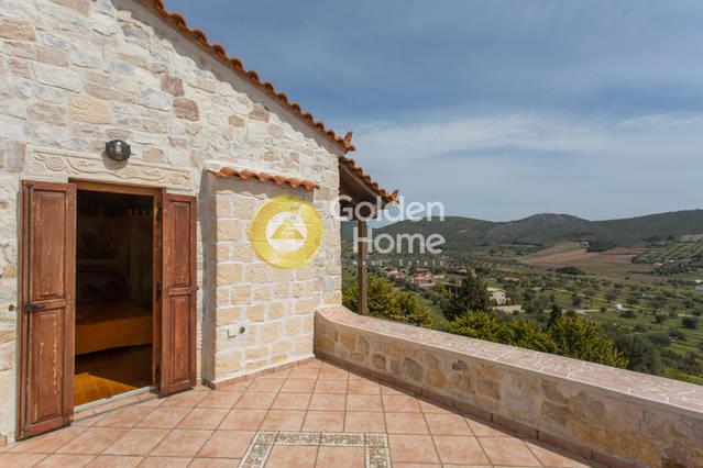 Ενοικιάζεται βίλα πετρόχτιστη, σε 5-πέντε επίπεδα, με παραδοσιακή αρχιτεκτονική. Διαθέτει μεγάλους – άνετους χώρους: τρία υπνοδωμάτια κάθε ένα με το μπάνιο του, ευρύχωρη τραπεζαρία και κουζίνα, μεγάλο σαλόνι, ιδιαίτερο δωμάτιο “οντά”, γραφείο και άπλετους εξωτερικούς χώρους για parking και δραστηριότητες, αυλές, βεράντες, κιόσκια, χτιστό φούρνο - ψησταριά, και πισίνα. Σε κτήμα 20 στρεμμάτων στο οποίο υπάρχει και Ναός ευρύχωρος χωράει μέχρι 40 άτομα, με ύψος 8-οκτώ μέτρα και έχει εσωτερική αγιογράφηση.