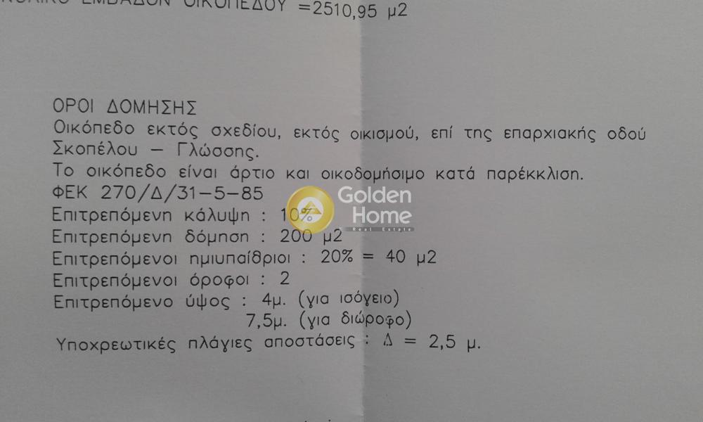 ΣΤΗΝ ΕΠΑΡΧΙΑΚΗ ΟΔΟ ΓΛΩΣΣΗΣ - ΣΚΟΠΕΛΟΥ /ΟΙΚΙΣΜΟΣ ΣΤΑΦΥΛΟΣ /ΘΕΣΗ ΚΑΣΤΑΝΗ ΣΕ ΣΗΜΕΙΟ ΤΟΥΡΙΣΤΙΚΟΥ ΕΝΔΙΑΦΕΡΟΝΤΟΣ, ΠΩΛΕΙΤΑΙ ΑΓΡΟΤΕΜΑΧΙΟ 2.275ΤΜ ΠΡΟΣ 45.000ΕΥΡΩ ΣΥΖΗΤΙΣΙΜΑ. ΜΕΓΑΛΟ ΑΤΟΥ Η ΥΠΑΡΞΗ ΟΙΚΟΔΟΜΙΚΗΣ ΑΔΕΙΑΣ ΕΝ ΙΣΧΥ ΓΙΑ ΑΝΕΓΕΡΣΗ ΣΥΓΚΡΟΤΗΜΑΤΟΣ ΤΟΥΡΙΣΤΙΚΩΝ ΚΑΤΑΛΥΜΑΤΩΝ. ΥΠΑΡΧΕΙ ΠΛΗΡΗΣ ΦΑΚΕΛΟΣ