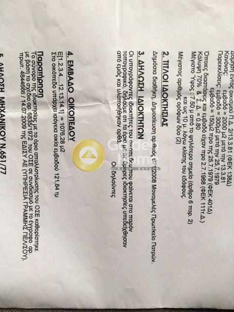Οικοπεδο 1076τμ εντος οικισμου αρτιο και οικοδομησιμο καλυψη 0,70 συντελεστης δομησης 0,8 μεγιστο υψος 7,50 απο το ψηλοτερο σημειο μεγιστος αριθμος οροφων 2 Στο οικοπεδο υπαρχει ισογεια κατοικια 122τμ κτισμενη το 1958 εχει αναικαινιστει γυρω στο 1976 και χρηζει επισκευης