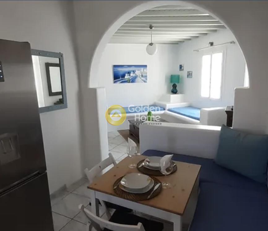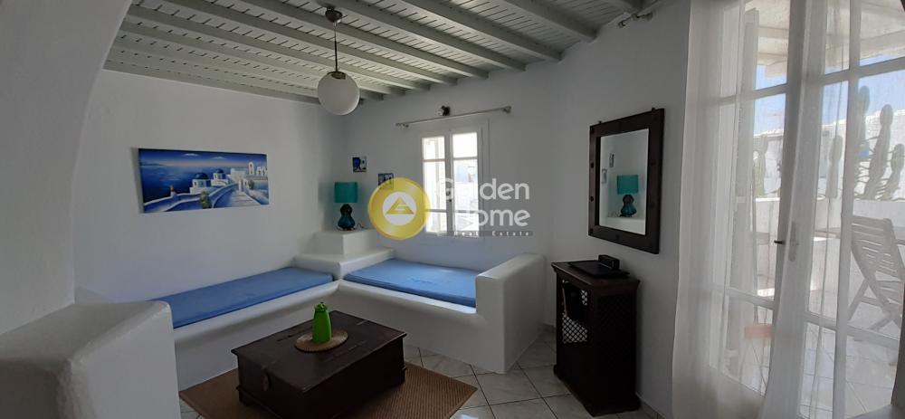 Το διαμέρισμα βρίσκεται 150μ από την παραλία του Ορνού. Είναι 50τμ, κατασκευής 1992, στον 1ο όροφο συγκροτήματος με θέα στον οικισμό με 1 κρεβατοκάμαρα, 1 σαλόνι , 1 μπάνιο και 1 κουζίνα. Διαθέτει μεγάλη βεράντα με χτιστούς καναπέδες και BBQ . Περιλαμβάνει όλες τις ηλεκτρικές συσκευές καθώς επίσης διαθέτει κλιματισμό και smart TV σε όλους τους χώρους. Το σαλόνι περιλαμβάνει 2 χτιστούς καναπέδες καθώς επίσης η κρεβατοκάμαρα διαθέτει ένα διπλό χτιστό κρεβάτι. Είναι ιδανική για εξοχική κατοικία ή επενδυτικό. Είναι σε μικρή απόσταση από χώρους ψυχαγωγίας, super market και μόλις 2,5χλμ από την πόλη της Μυκόνου.
