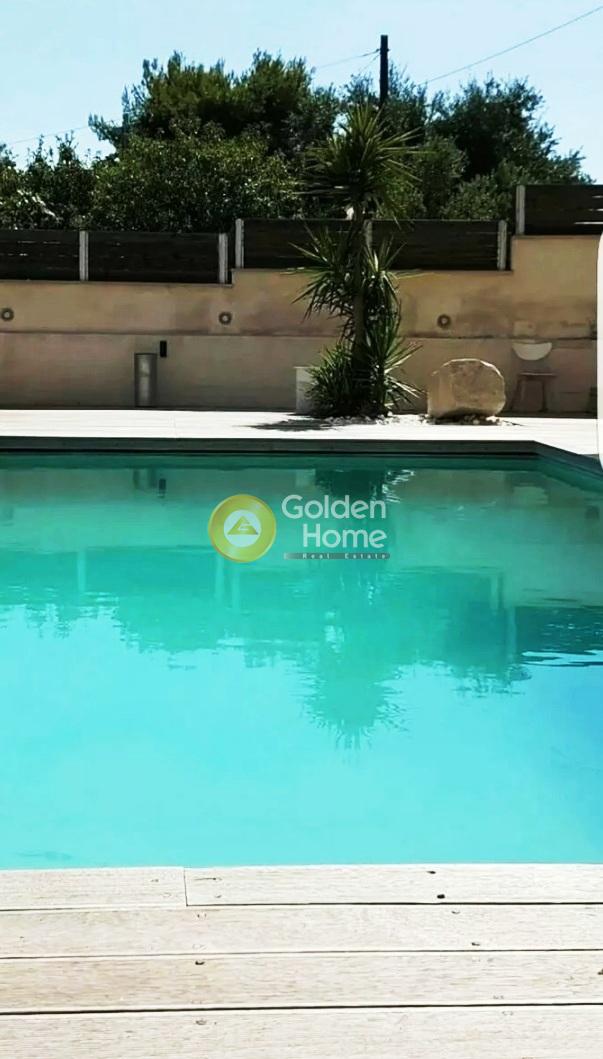 Ιδιαίτερης αισθητικής υπερπολυτελής βίλα/μονοκατοικία, 20' έξω από την Αθήνα μέσω Α.Ο. Ενοικιάζεται επιπλωμένη και με πλήρη οικοσκευή και συσκευές. Διαθέτει τεράστιο διαμορφωμένο περιβάλλοντα χώρο, ιδιόχρηστη μεγάλη πισίνα, εξωτερικούς χώρους που δίνουν αίσθηση μοναδική, άπλετου χώρου αφού ενοποιούνται αισθητικά και λειτουργικά με τους επίσης άνετους εσωτερικούς χώρους. Μεγάλο αβαντάζ η καταπληκτική περίοπτη θέα