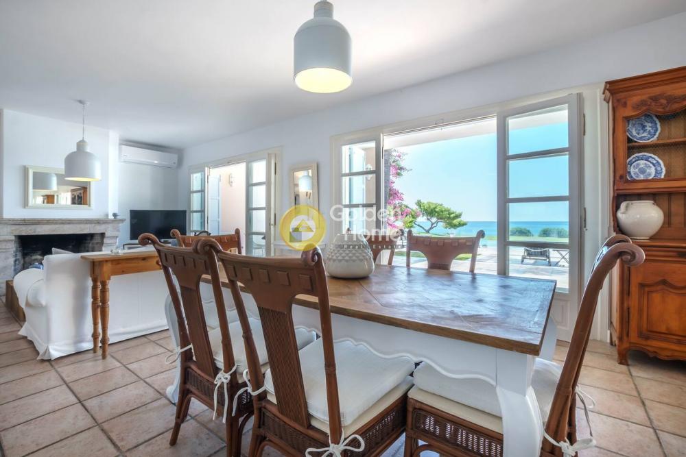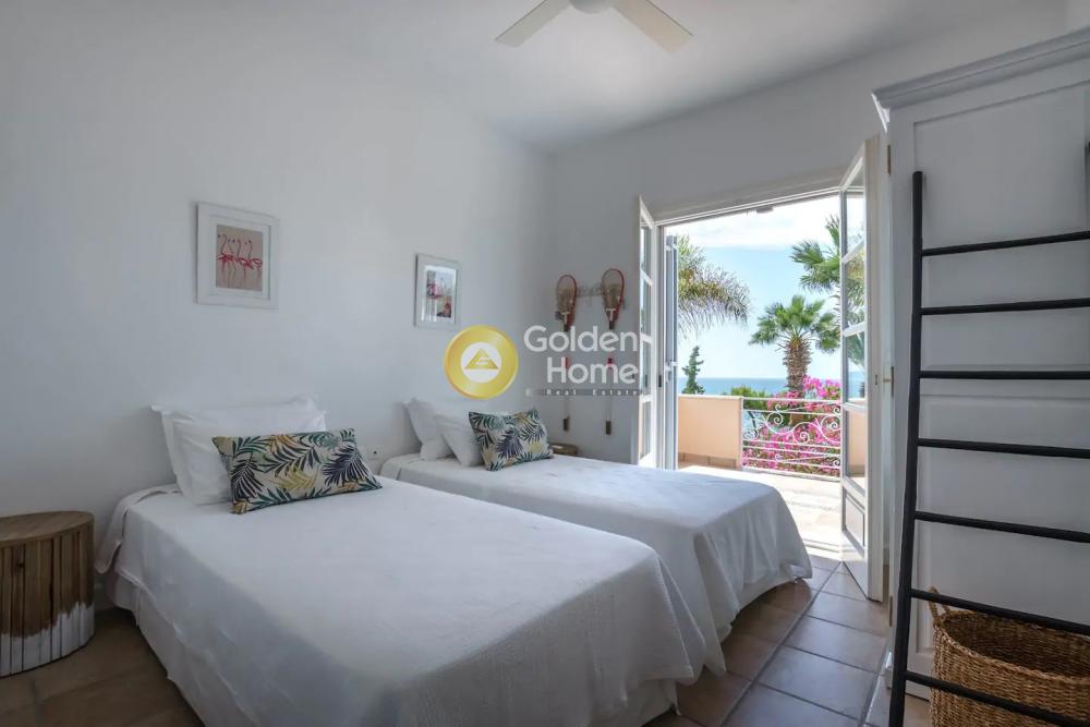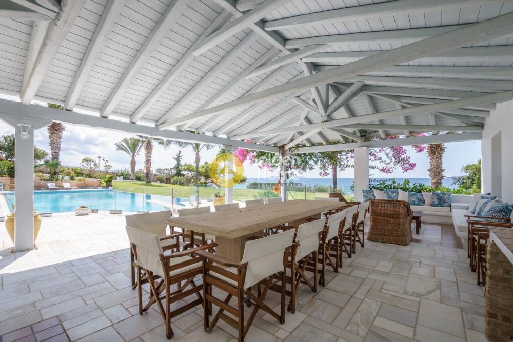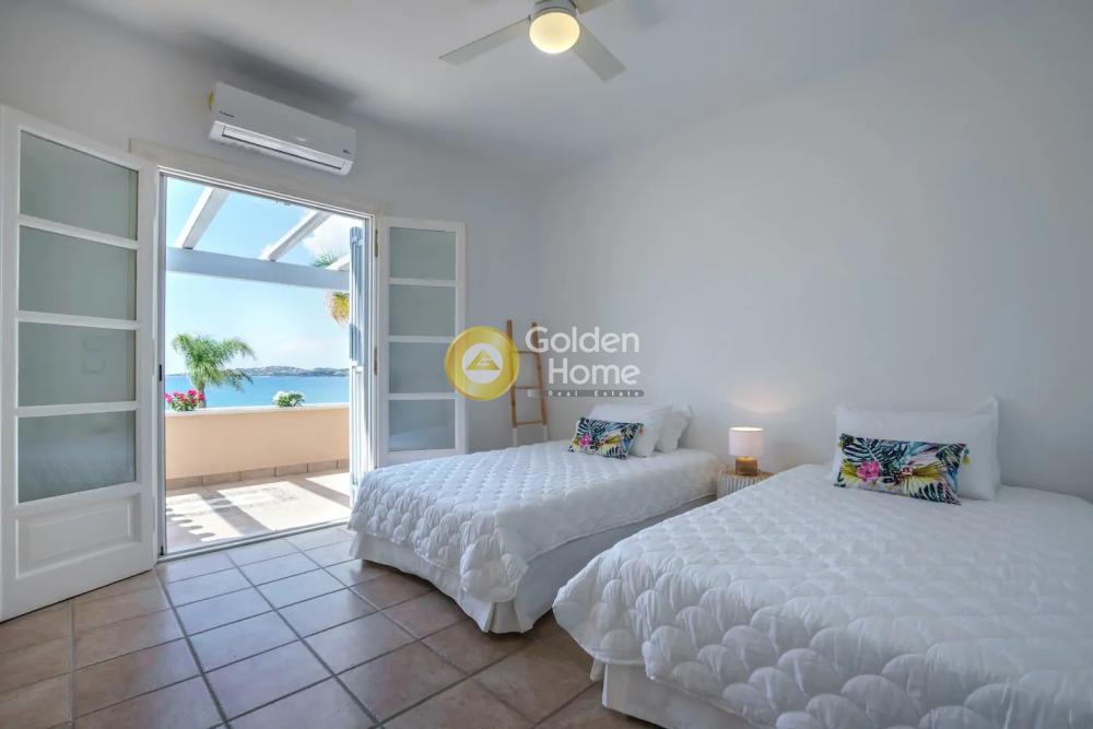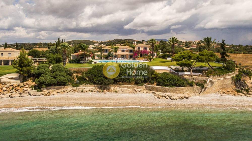 This elegant beachfront Villa is located in Porto Heli area and offers tranquility and privacy for all the guests. The villa consists of 2 open-concept houses with totally 6 bedrooms, 2 living rooms, 2 dining rooms and 2 fully equipped kitchens. Both the living and dining rooms open onto the covered terrace and offer sea views. A single-family house is semi-detached to the villa including 2 bedrooms ,2 bathrooms, a fully equipped kitchen, a living room, and a dining room. Regarding the exterior of this amazing villa, there are wonderfully landscaped gardens with lawns, olive trees, flower-beds and a large swimming pool. It is a unique first-line villa, with direct access to a small beach!!!!