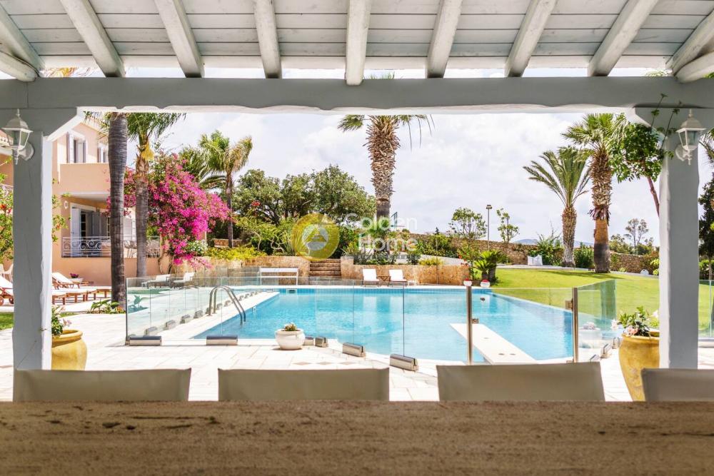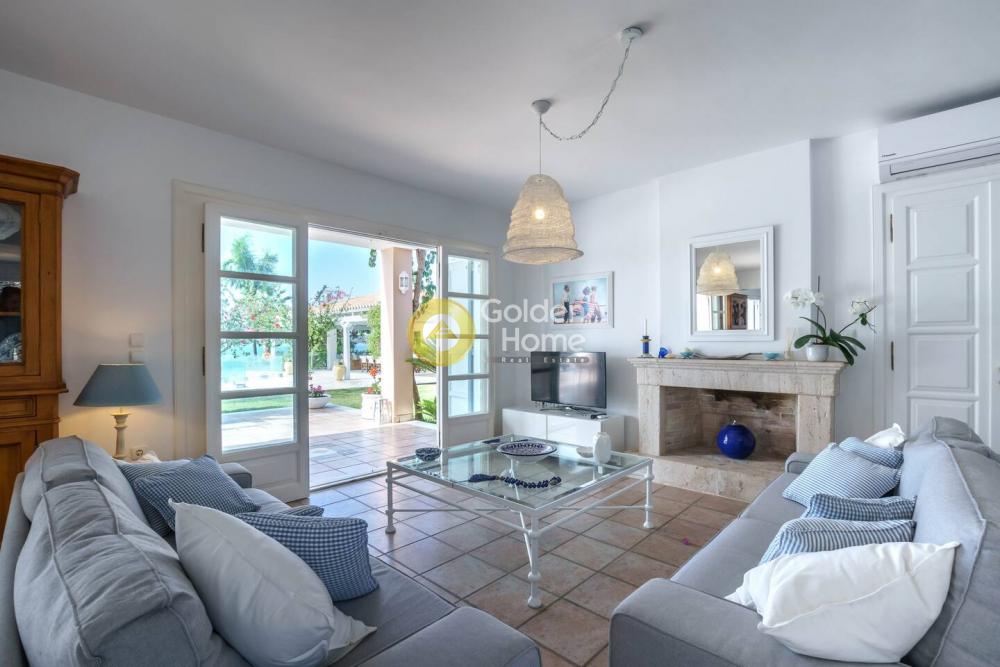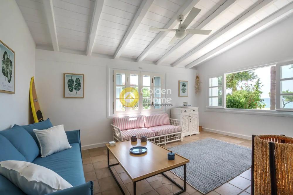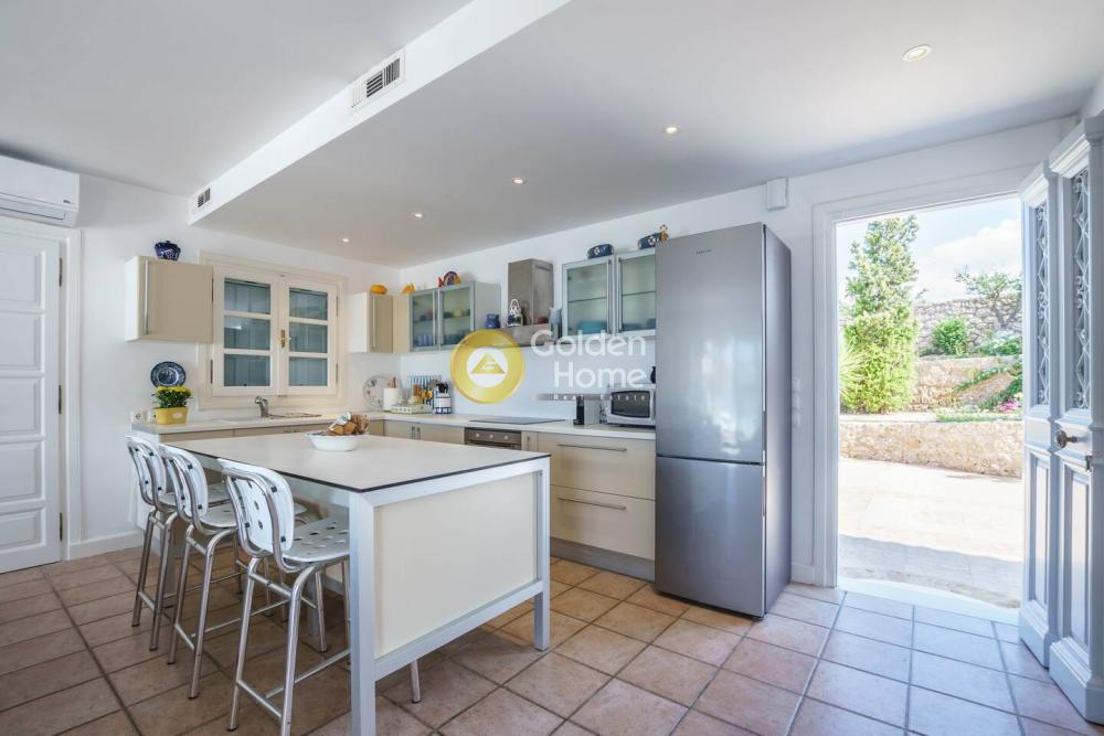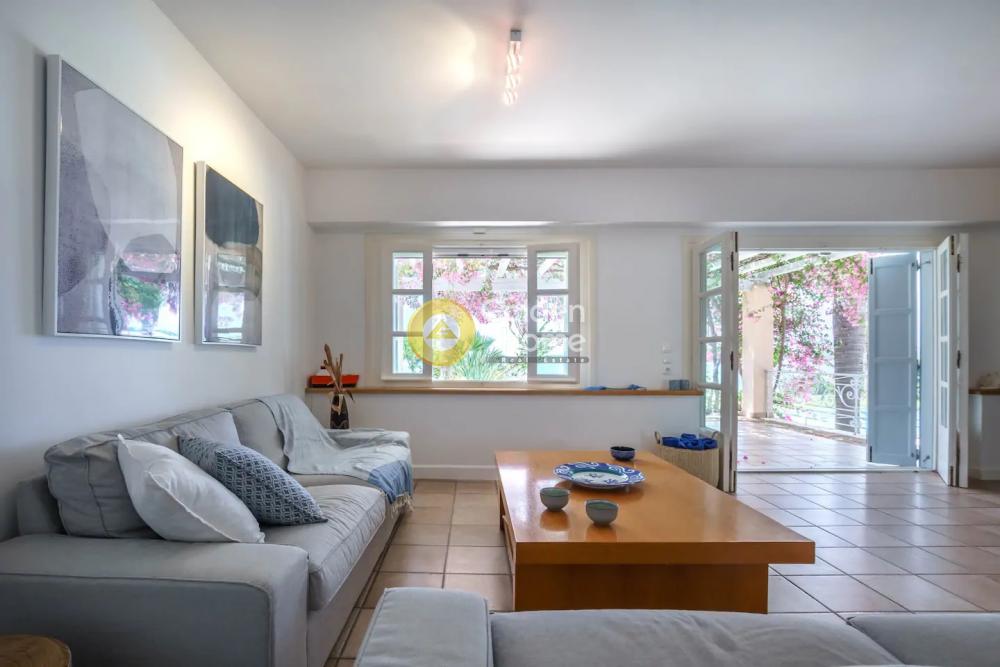 This elegant beachfront Villa is located in Porto Heli area and offers tranquility and privacy for all the guests. The villa consists of 2 open-concept houses with totally 6 bedrooms, 2 living rooms, 2 dining rooms and 2 fully equipped kitchens. Both the living and dining rooms open onto the covered terrace and offer sea views. A single-family house is semi-detached to the villa including 2 bedrooms ,2 bathrooms, a fully equipped kitchen, a living room, and a dining room. Regarding the exterior of this amazing villa, there are wonderfully landscaped gardens with lawns, olive trees, flower-beds and a large swimming pool. It is a unique first-line villa, with direct access to a small beach!!!!