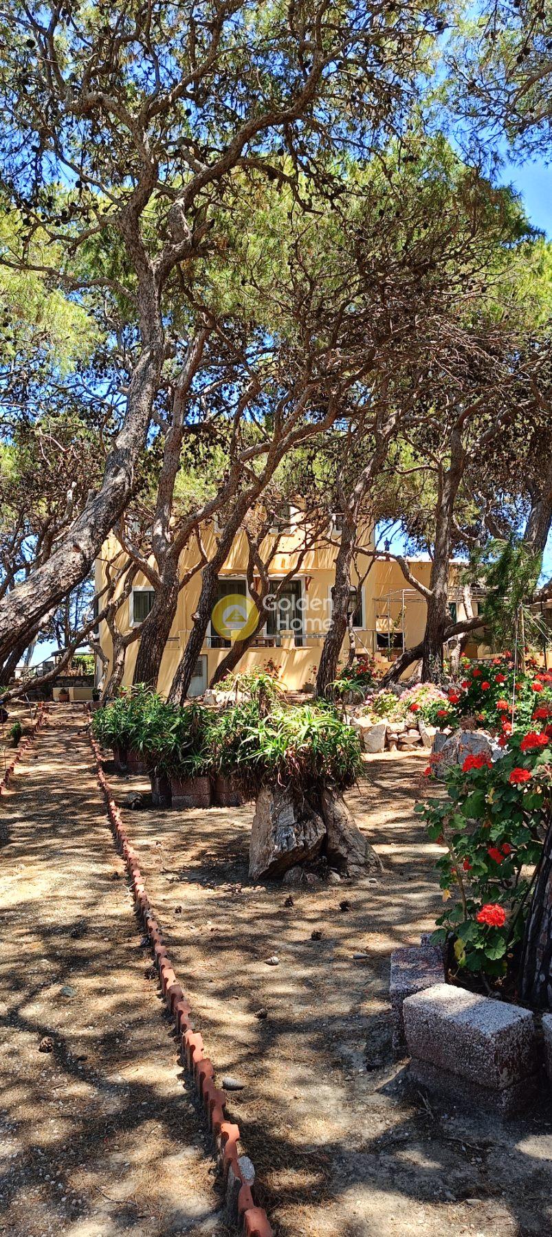Πωλείται νεοκλασική διώροφη μονοκατοικία σε εξαιρετική τοποθεσία στα Χρούσα, στον παραδοσιακό οικισμό της Σύρου με πολλά πεύκα, παραδοσιακά νέοκτιστα σπίτια, βίλες και γραφικές εκκλησίες. Αποτελείται από ισόγειο και πρώτο όροφο, καθώς και ξενώνα ο οποίος συνδέεται με εσωτερική σκάλα από το ισόγειο, αλλά διαθέτει και ανεξάρτητη είσοδο από τον κήπο. Περνώντας την παραδοσιακή είσοδο του σπιτιού υπάρχει αυλή με ωραία θέα. Η συγκεκριμένη βίλα αποτελείται από τους κύριους χώρους των 156τμ και από βοηθητικούς (ξενώνα, δεξαμενή και αποθήκη) περίπου άλλα 70τμ σε οικόπεδο 1230 τ.μ.. Στο ισόγειο υπάρχει μεγάλο καθιστικό με τζάκι, κουζίνα και τραπεζαρία , οι οποίες έχουν πρόσβαση σε βεράντα που οδηγεί στον πίσω κήπο, όπου διατίθεται μπάρμπεκιου με εξωτερικό καθιστικό και μεγάλο κήπο με πεύκα. Ο ξενώνας ο οποίος στο επίπεδο αυτού του κήπου είναι ισόγειος και έχει τη δική του είσοδο, διαθέτει χτιστούς καναπέδες , κουζινάκι και λουτρό. Στον πρώτο όροφο, υπάρχουν δύο υπνοδωμάτια και 2 μπάνια με παράθυρα. Και τα δύο υπνοδωμάτια έχουν πρόσβαση σε μεγάλη βεράντα, με εξαιρετική θέα. Τα Χρούσσα απέχουν 2χλμ από τον όρμο της Βάρης, και 8χλμ από την Ερμούπολη.