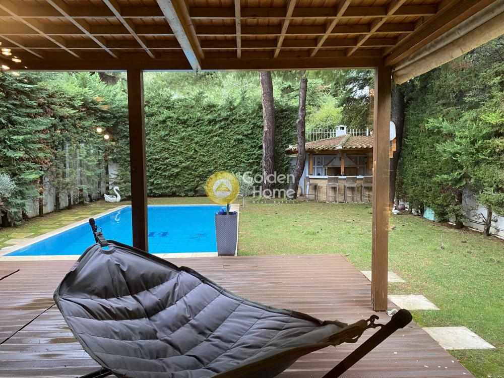 Εξαιρετική, πολυτελής μεζονέτα 430τμ, κατασκευής 2000, σε 4 επίπεδα. Στο ισόγειο, μεγάλο σαλόνι, τραπεζαρία, κουζίνα με πάσο & wc. Στον πρώτο όροφο, 1 υ/δ master με dressing room και 2 ακόμα υ/δ με το μπάνιο τους. Στον 2ο όροφο είναι η σοφίτα και στο ημιυπόγειο/playroom μεγάλο καθιστικό με home cinema, δεύτερη κουζίνα, ξενώνας, εντυπωσιακό μπάνιο με jacuzzi, αποθήκη & laundry room. Υπέροχος κήπος με πισίνα και bbq. Σε περιοχή με πολυτελείς κατοικίες, κοντά στις αθλητικές εγκαταστάσεις και τα σχολεία του Διονύσου, 15 λεπτά από τη Νέα Μάκρη.