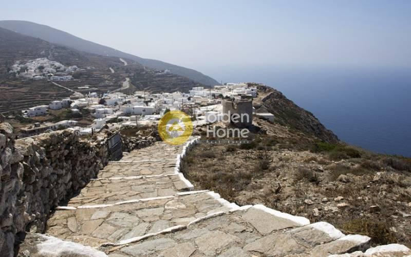 Σίκινος Χώρα οικόπεδο 41τμ, εντός οικισμού, προσόψεως, άρτιο, με υπάρχων ασκεπές κτίριο 27τμ, πρόσβαση από πεζόδρομο, αμφιθεατρικό.