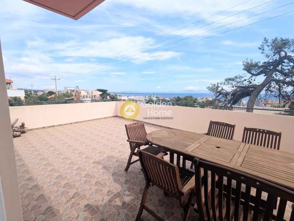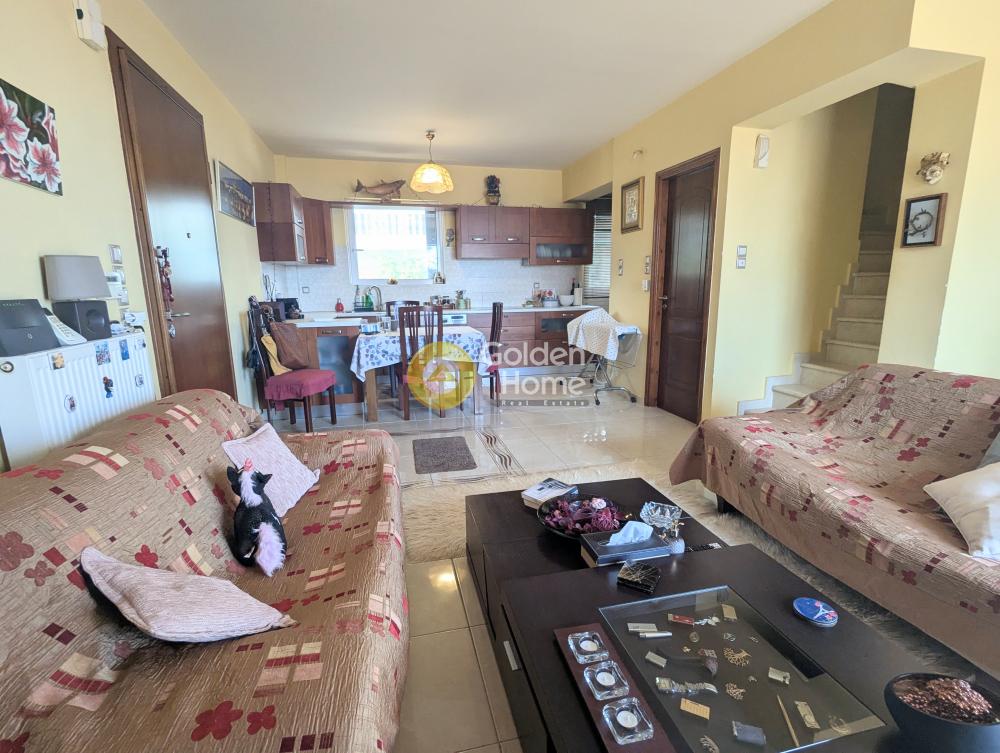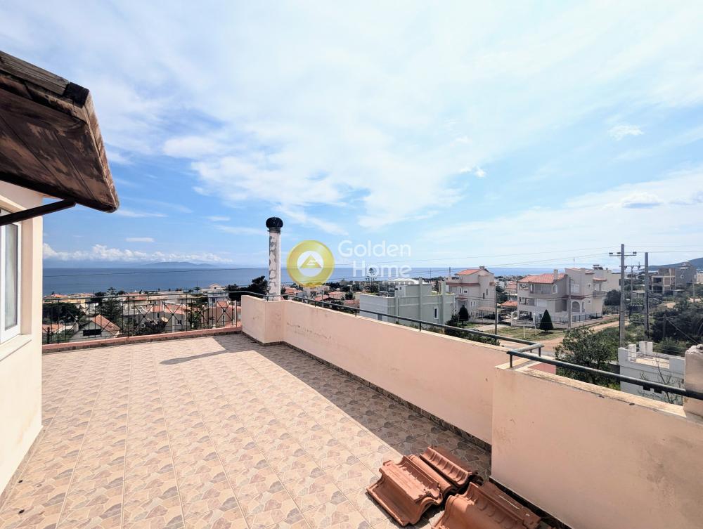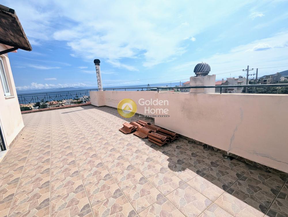 Οροφομεζονέτα με καταπληκτική θέα στη θάλασσα, εξαιρετικής κατασκευής. Διαθέτει στο πρώτο επίπεδο κουζίνα ενιαία με σαλονοτραπεζαρία, WC και βεράντα 40τμ με απεριόριστη θέα στη θάλασσα, στο δεύτερο επίπεδο 3 ΥΔ με μπάνιο και τέλος σοφίτα 10τμ με ιδιόχρηστη ταράτσα. Το ακίνητο είναι κατασκευής του 2008 με αυτόνομη θέρμανση σε κάθε επίπεδο με λέβητα πετρελαίου, έχει πόρτα ασφαλείας, ηλιακό, τζάκι, συναγερμό και κλειστό parking 20τμ. Βρίσκεται σε ήσυχη περιοχή, κοντά στην αγορά, τα σχολεία και έχει εύκολη πρόσβαση στις κεντρικές οδικές αρτηρίες.