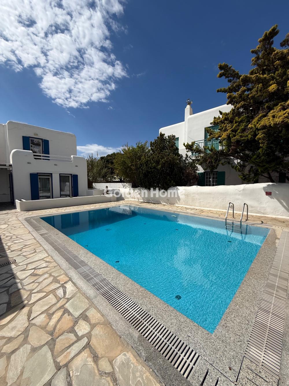 Ενοικιάζεται κομψό και πλήρως εξοπλισμένο διαμέρισμα στην καρδιά της Μυκόνου, σε ήσυχη και προνομιακή τοποθεσία. Σε απόσταση μόλις 1 λεπτού με τα πόδια από τα Ματογιάννια και τη Μικρή Βενετία, προσφέρει άμεση πρόσβαση σε εστιατόρια, καταστήματα και νυχτερινή ζωή, χωρίς ανάγκη μετακίνησης. Το διαμέρισμα διαθέτει πλήρως εξοπλισμένη κουζίνα, κλιματισμό, δωρεάν Wi-Fi, τηλεόραση επίπεδης οθόνης, καθώς και ποιοτικά κλινοσκεπάσματα και πετσέτες. Προσφέρει θέα σε κήπο και πισίνα, δημιουργώντας ιδανικές συνθήκες χαλάρωσης. Βρίσκεται κοντά σε δημοφιλείς παραλίες όπως ο Άγιος Χαραλάμπος και η Μεγάλη Άμμος, ενώ απέχει μόλις 2χλμ από το Αεροδρόμιο Μυκόνου. Επιπλέον, η στάση λεωφορείων Fabrika (200μ) εξασφαλίζει εύκολη πρόσβαση σε όλες τις διάσημες παραλίες του νησιού. Ιδανική επιλογή για όσους αναζητούν άνεση, πολυτέλεια και κορυφαία τοποθεσία στο πιο κοσμοπολίτικο νησί της Ελλάδας