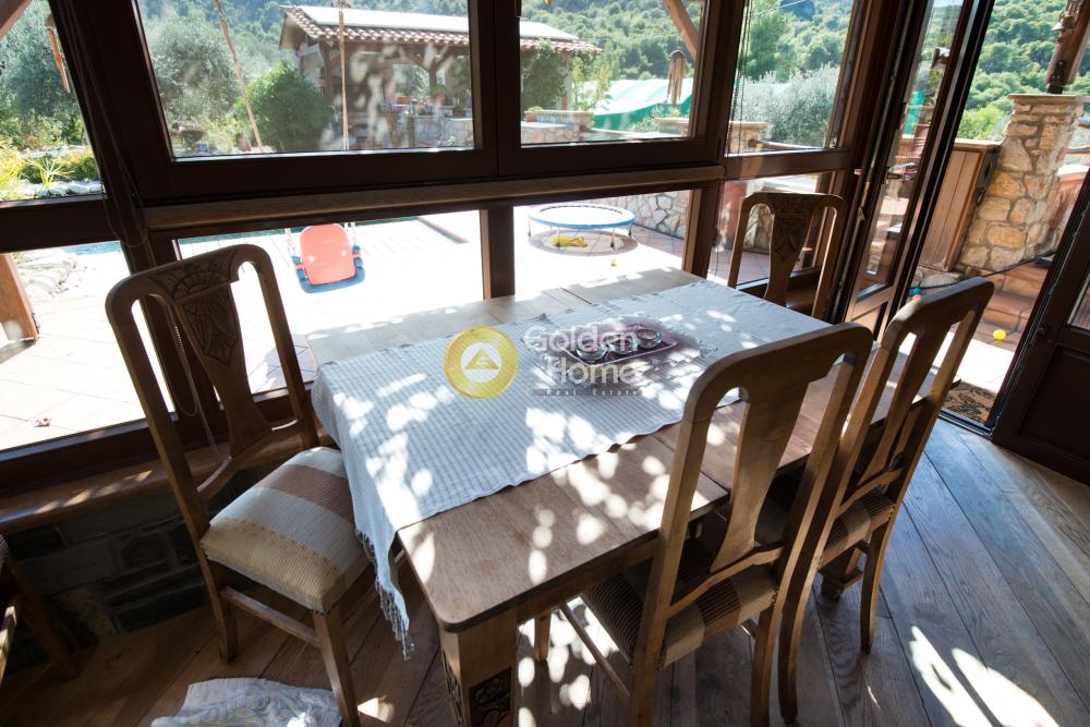 ΒΙΟΚΛΙΜΑΤΙΚΗ ΚΑΤΟΙΚΙΑ ΣΤΗ ΝΤΡΑΣΣΑ, ΚΑΤΑΛΛΗΛΗ ΓΙΑ ΙΔΙΟΚΑΤΟΙΚΗΣΗ ΚΑΙ AIRBNB. Πισίνα που μοιάζει με τεχνητή λίμνη 50 m2 που λειτουργεί με βιολογικά φίλτρα και όχι χλώριο. Βρίσκεται 3,5χλμ από τις παραλίες των Λουτρών Ωραίας Ελένης. Το σπίτι και η γύρω γη προσφέρει ιδιωτικότητα και ηρεμία όπως είναι βρίσκεται στα όρια του χωριού και το πλησιέστερο σπίτι απέχει 80 μέτρα. • Ηλιακές κυψέλες εγκατεστημένες στην οροφή, 10KW, ετήσιοι μέσοι όροι απόδοσης 4.000-5.000 ευρώ. • Η καλλιέργεια βιολογικής ελιάς αποδίδει περίπου 440 κιλά ελαιόλαδο. • Προαιρετική καλλιέργεια λαχανικών εποχής ντομάτες, πιπεριές, μπρόκολο. και τα λοιπά • Προεγκατεστημένη μονάδα εκτροφής σαλιγκαριών, κλειστού τύπου 850 m2 Το σπίτι διατίθεται επιπλωμένο και περιλαμβάνει όλες τις ηλεκτρικές συσκευές επίσης ως εργαλεία για εσωτερική και εξωτερική χρήση. • Ο προσανατολισμός του κτιρίου είναι τέτοιος ώστε τα μεγαλύτερα ανοίγματα βλέπουν νότια και ανατολικά εκμεταλλευόμενοι τη χειμωνιάτικη ηλιοφάνεια. η θερμότητα που συλλέγεται στον ηλιόλουστο χώρο εσωτερική φύλαξη, ενέργεια Η διατήρηση φτάνει το 60%. Υπάρχουν μόνο 3 ανοίγματα με βόρειο προσανατολισμό και Τριπλός τοίχος με μόνωση, στη βόρεια πλευρά του κτιρίου. • Ανίχνευση και αποφυγή μαγνητικών κόμβων Hartman όπου η έχουν στηθεί κεφαλάρια των κρεβατιών. • Θεμέλια: Υπάρχουν 3 αεραγωγοί ραδονίου καθώς και 2 τύποι γείωσης. Ασφαλτική στεγανοποίηση σε όλους τους τοίχους του υπογείου. • Κατασκευή με τσιμέντο χωρίς στάχτη • Ο σίδηρος που χρησιμοποιείται στις κατασκευές είναι απαλλαγμένος από ακτινοβολία πιστοποιημένο και σκουριές • Τοίχοι: Τούβλα κατασκευασμένα με τσιμέντο χωρίς τέφρα και ακτινοβολία, πιστοποιημένο από το Ινστιτούτο ΔΗμόκριτος • Καμινάδα στη βόρεια πλευρά του σπιτιού σημαντική για την ψύξη στο καλοκαίρι. • Μόνωση με ξύλινο μαλλί ηράκλειτος, οικολογική ουσία • Επιστρώσεις: Χρήση περιβαλλοντικά ασφαλών επιστρώσεων σε όλο το σύνολο κατασκευή χωρίς τσιμέντο και ασβέστη • Χρώματα: Εξωτερικά οικολογικά χρώματα και εσωτερική χρήση οικολογικού φιλικά προς το περιβάλλον χρώματα της AURO • Ειδικά ρελέ στα υπνοδωμάτια που διακόπτουν τη ροή του ρεύματος στο νύχτα, οπότε δεν υπάρχει ηλεκτρομαγνητική ενέργεια. Καλωδίωση των υπνοδωματίων σε α έτσι ώστε να μην υπάρχει ηλεκτρομαγνητική ενέργεια στα δωμάτια. Άλλα χαρακτηριστικά του σπιτιού και του εδάφους • Καλυμμένο BBQ με πλήρη εξωτερική κουζίνα, 25m2 270 ft2. Ξυλόσομπα και καυστήρες αερίου. • Εκτός από το σπίτι, υπάρχουν 4 αποθηκευτικοί χώροι στον χώρο, 1 WC και 1 ντους, ρείθρα για να φιλοξενήσουν έως και 6 σκύλους και μια κότα. • Υπάρχουν 60 ελαιόδεντρα, 50 εσπεριδοειδή, 2 κήποι με βότανα και 1 λαχανόκηπος δεν είναι πιστοποιημένος, αλλά οι ιδιοκτήτες δεν έχουν χρησιμοποιήσει ποτέ χημικά στο έδαφος της γης • Τα κάσα είναι από μασίφ ξύλο μεράντι βαμμένα με όλα τα οικολογικά βαφές. Σίτες σε όλα τα παράθυρα με διπλά τζάμια για συγκράτηση ζέστη το χειμώνα και δροσιά το καλοκαίρι. • Στέγη, πέργκολα πέργκολα και μπαλκόνια από ξύλο καστανιάς Αγίου Όρος και λαδωμένο με περιβαλλοντικά ασφαλές προϊόν της AURO • Ανεμιστήρες οροφής σε κάθε δωμάτιο • Οποιαδήποτε ξύλινη κατασκευή στο εσωτερικό του σπιτιού κυρίως από καστανιά ξύλο ελαιωμένο με προϊόντα ασφαλή για το περιβάλλον • Κόλλα σε πλακάκια όλα ασφαλή για το περιβάλλον • Ξύλινα πατώματα σε όλο το σπίτι από δρυς και λαδωμένα περιβαλλοντικά ασφαλή πρ