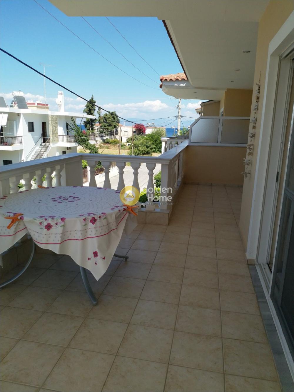 Διαμέρισμά επιπλωμένο 99τ.μ. κατασκευής του 2003 γωνιακό, διαμπερές σε άριστη κατάσταση με χρήση 1 μήνα το χρόνο, με 3 κρεβατοκάμαρες, καθιστικό με ενεργειακό τζάκι, κουζίνα ενιαία, 1 μπάνιο & 1 WC, βεράντες γύρω γύρω, μόλις 150μ. από τη θάλασσα, κοντά σε προαστιακό, συγκοινωνίες και αγορά. Διαθέτει ημιυπόγειο χώρο πάρκινγκ 57τ.μ. νομιμοποιημένο που μπορεί να χρησιμοποιηθεί ως πάρκινγκ αλλά και να μετατραπεί σε διαμέρισμα.