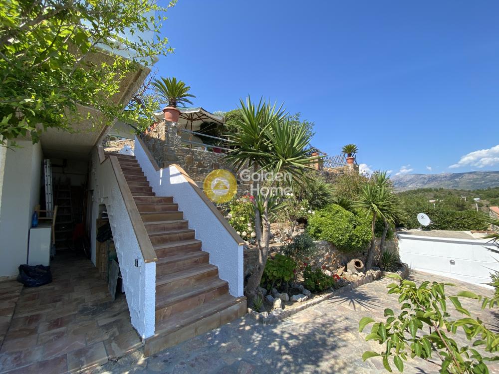 Το ακίνητο αποτελείται από 4 ανεξάρτητες κατασκευές σε δυο υψομετρικά επίπεδα. Στο πρώτο επίπεδο το ισόγειο 59τμ είναι πλήρως εξοπλισμένο και διαθέτει τζάκι, καλοριφέρ και κλιματιστικό. Ο πρώτος όροφος είναι 72τμ πλήρως εξοπλισμένος και διαθέτει τζάκι, καλοριφέρ και κλιματιστικό. Στο δεύτερο επίπεδο το ισόγειο είναι 24τμ και διαθέτει κρεβατοκάμαρα, wc και κλιματιστικό. Το ακίνητο διαθέτει δυο δεξαμενές νερού 16000lt και 12000lt. Η απόσταση από τη θάλασσα στη περιοχή Λευκάθια είναι 120 μέτρα και η θέα από το ακίνητο είναι απεριόριστη. Υπάρχουν 30 τ.μ. βοηθητικοί χώροι και υπόλοιπο δόμησης 136τ.μ.