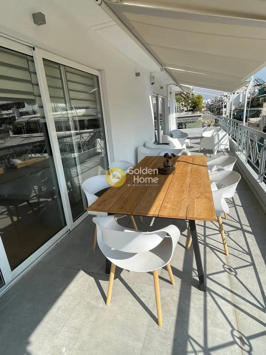 ΓΟΥΔΗ (Ζωγράφου). Ενοικιάζεται πολυτελές ρετιρέ οροφοδιαμέρισμα 110 τ.μ., 5ου ορόφου, σε προνομιακό σημείο μόλις ένα λεπτό με τα πόδια από την πλατεία του Αγίου Θωμά και το νοσοκομείο Λαϊκό. Το ακίνητο είναι πλήρως και ριζικά ανακαινισμένο τον 2023, διαθέτει αυτόνομη θέρμανση πετρελαίου, κλιματισμό, ηλιακό θερμοσίφωνα και τζάκι στο ευρύχωρο καθιστικό του. Το κύριο χαρακτηριστικό του είναι η εντυπωσιακή γωνιακή βεράντα 120 τ.μ. με απεριόριστη θέα, η οποία περιβάλλει το διαμέρισμα. Αποτελείται από ένα επίπεδο που περιλαμβάνει σαλόνι, τραπεζαρία, κουζίνα, 3 υπνοδωμάτια, μπάνιο και WC, ενώ διαθέτει επίσης πόρτα ασφαλείας, σύστημα συναγερμού, νυχτερινό ρεύμα, αποθήκη και δική του θέση πάρκινγκ. Βρίσκεται σε οικιστική ζώνη, σε προσεγμένη πολυκατοικία κατασκευής του 2000 με ασανσέρ. Παρέχεται η δυνατότητα ενοικίασης είτε επιπλωμένο είτε μη, αναλόγως των αναγκών του ενοικιαστή.