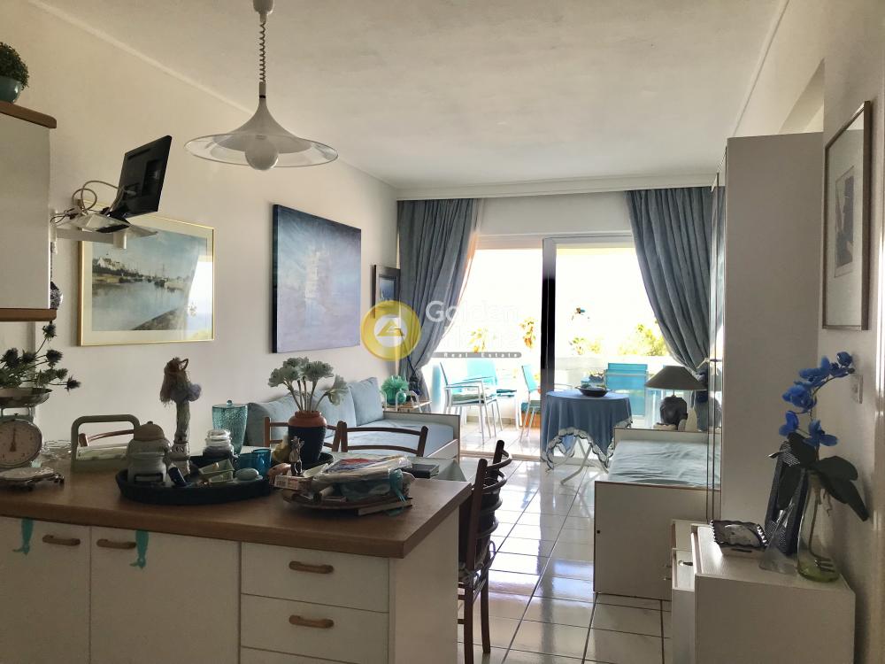 Διαμέρισμα 50 τμ, 2ου ορόφου, κατασκευής του 1991, προσόψεως με απεριόριστη θέα στη θάλασσα, μόλις 4 λεπτά από την παραλία. Αποτελείται από καθιστικό, κουζίνα με πάσο, ένα υπνοδωμάτιο, λουτρό και μια υπέροχη βεράντα 16 τμ. Βρίσκεται σε φροντισμένο κτίριο με μεγάλο κήπο κι έχει κατοικηθεί ελάχιστα, μόνο από τον ιδιοκτήτη, γι αυτό είναι σε άριστη κατάσταση.