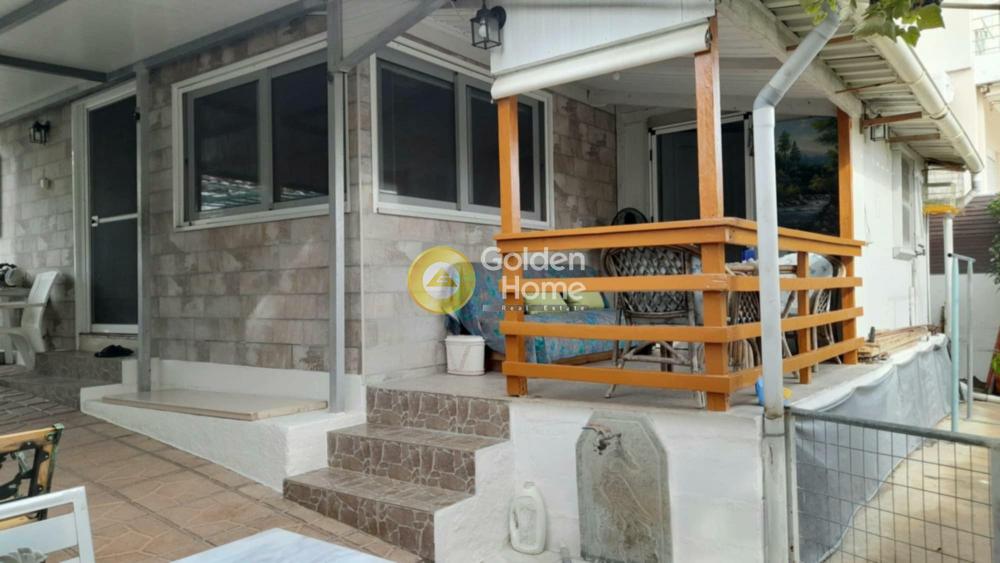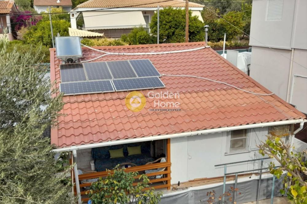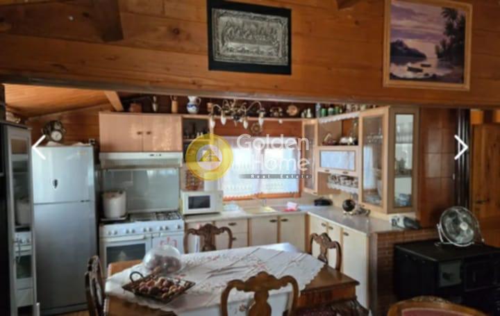 Ξύλινο σπίτι με επένδυση πλακάκια πέτρας στην Ερέτρια με φωτοβολταϊκά στην στέγη. Κατάλληλο για μόνιμη ή εξοχική κατοικία. Είναι ένα κυρίως σπίτι 60τμ, μία γκαρσονιέρα 15τμ με WC και ντουζ και μία αποθήκη με ΅WC και ντουζ σε οικόπεδο 250τμ.