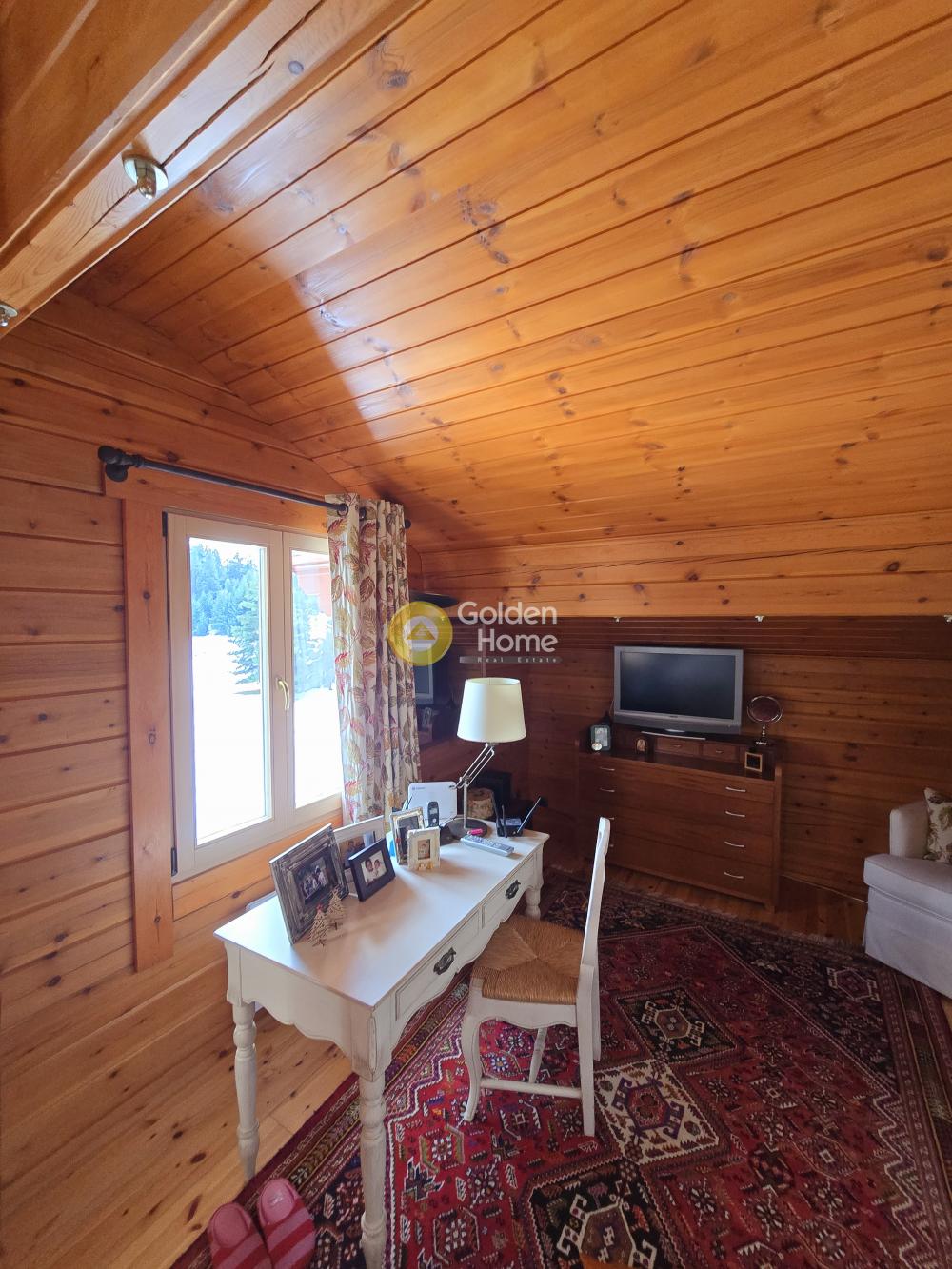 ΠΑΡΝΑΣΣΟΣ πολυτελές Φινλανδικό σαλέ 180τμ μέσα σε μικρό συγκροτημα κατοικιών 4ων στρεμμάτων. Με 4 Υ/δ εκ των οποίων τα 2 μάστερ, σύνολο 3 μπάνια, 1 WC, 1 κουζίνα. Η εσωτερική άνετη σκάλα συνδέει και τα 3 επίπεδα. Στο ισόγειο με 2 μάστερ υπνοδωμάτια και μεγάλο σαλόνι, υπάρχει πόρτα για άμεση πρόσβαση στον κήπο. Στον 1ο όροφο είναι η κύρια εισοδος του σαλέ με σαλόνι, τζάκι, κουζίνα και πρόσβαση στη περιμετρική βεράντα με την ανεμπόδιστη θέα στα έλατα και το χιονισμένο τοπίο. Στη σοφίτα βρίσκονται 2 επιπλέον κρεββατοκάμαρες με 1 μπάνιο. Η πρόσβαση στο σαλέ γίνεται απο 2 δρόμους.